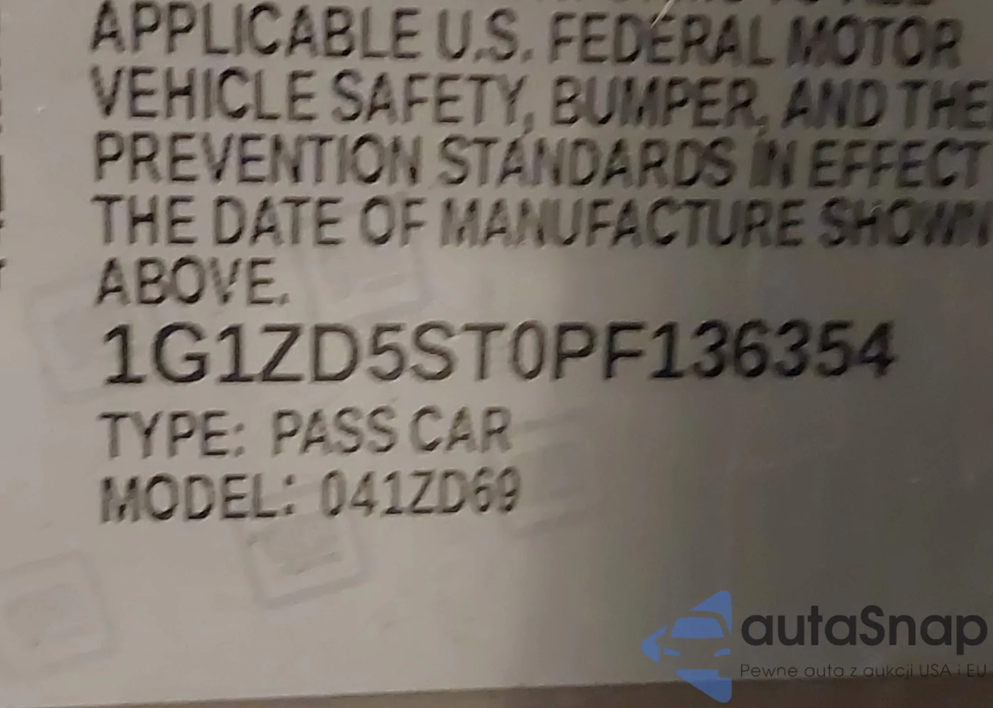 LOT: 43099420 VIN: 1G1ZD5ST0PF136354