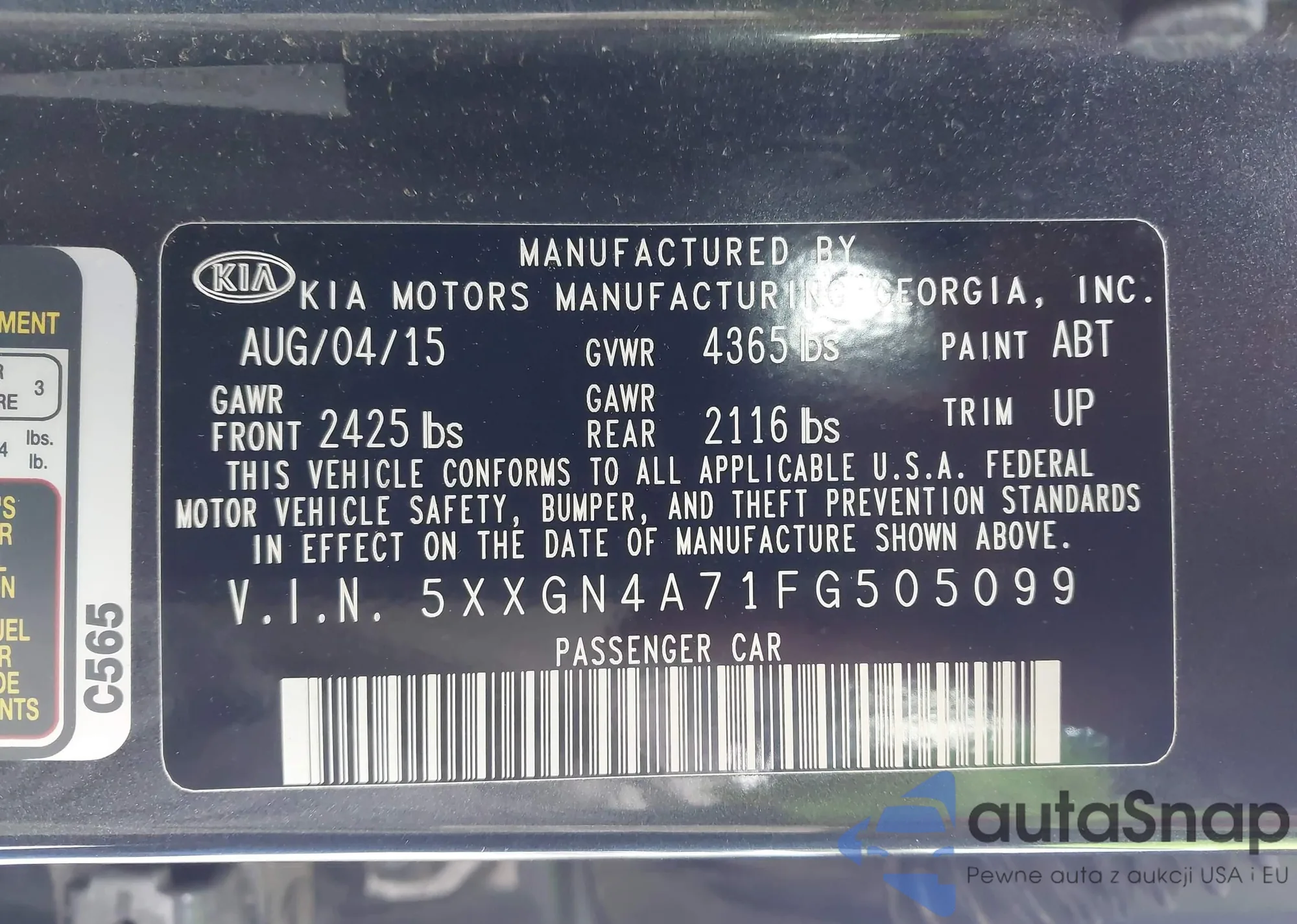 • VIN 5XXGN4A71FG505099