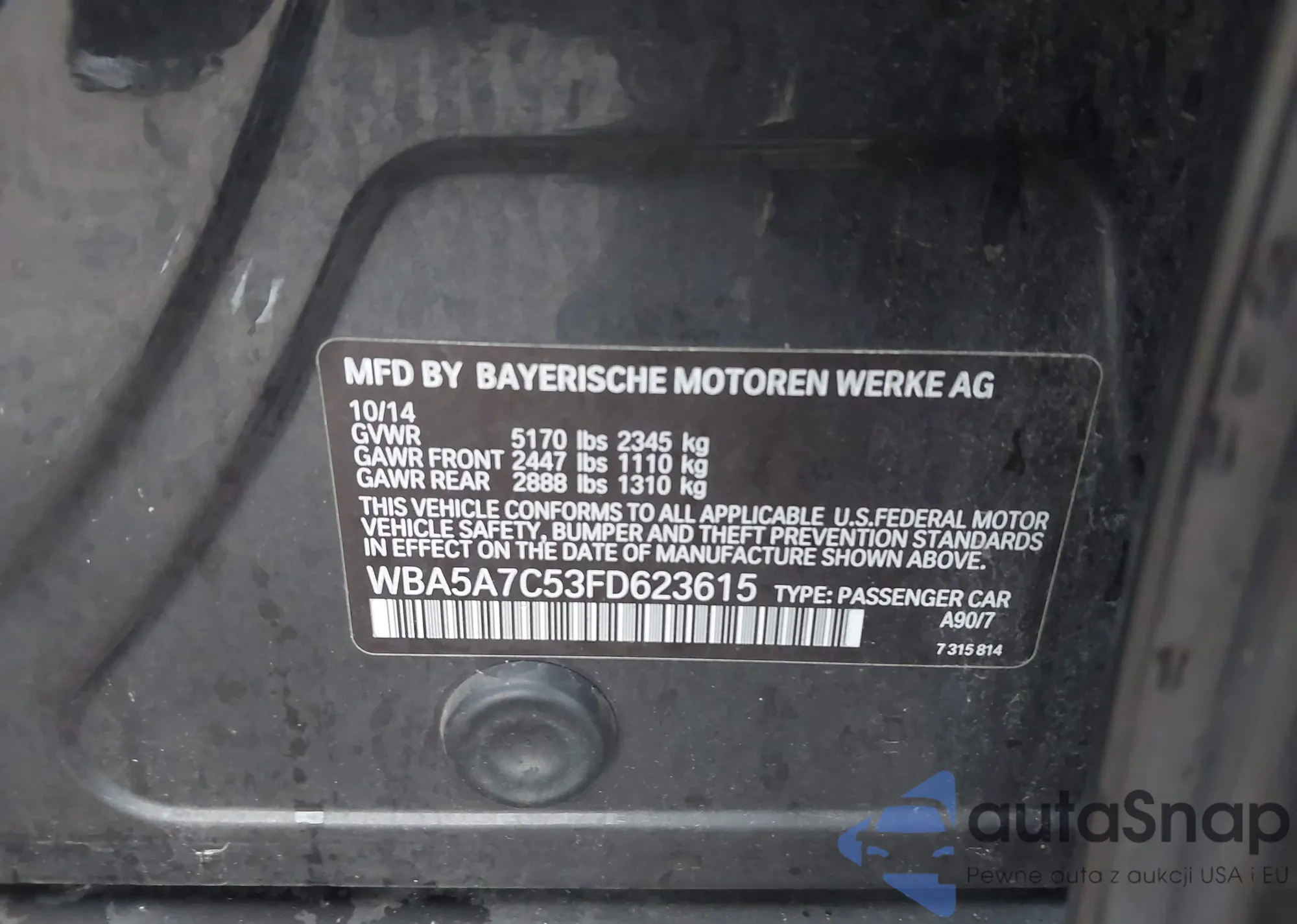 • VIN WBA5A7C53FD623615