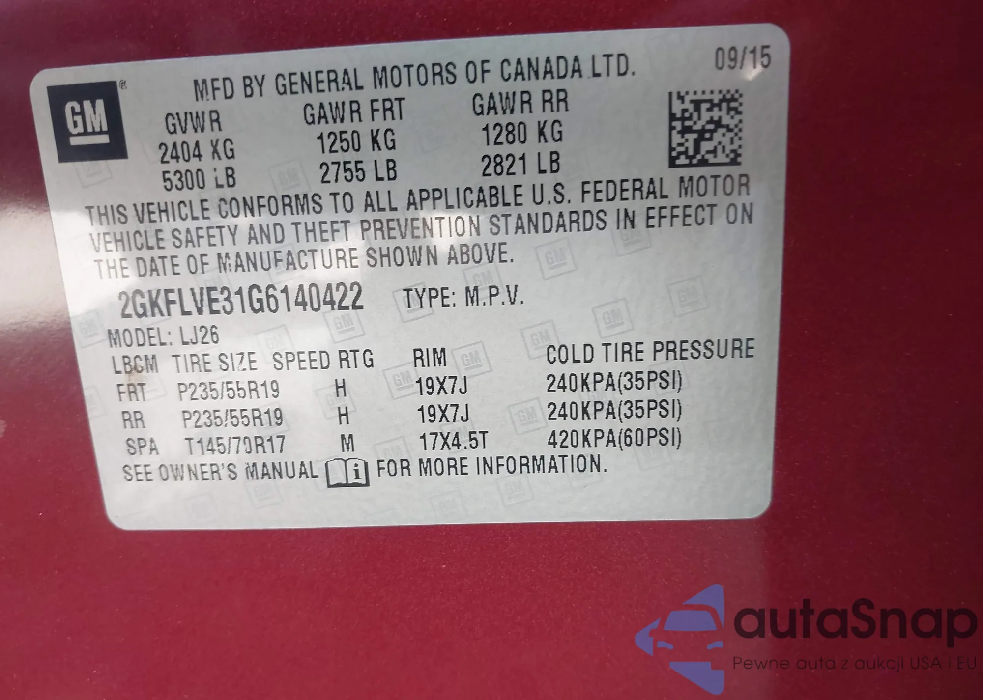 LOT: 43121973 VIN: 1GYKPDRS2RZ755122