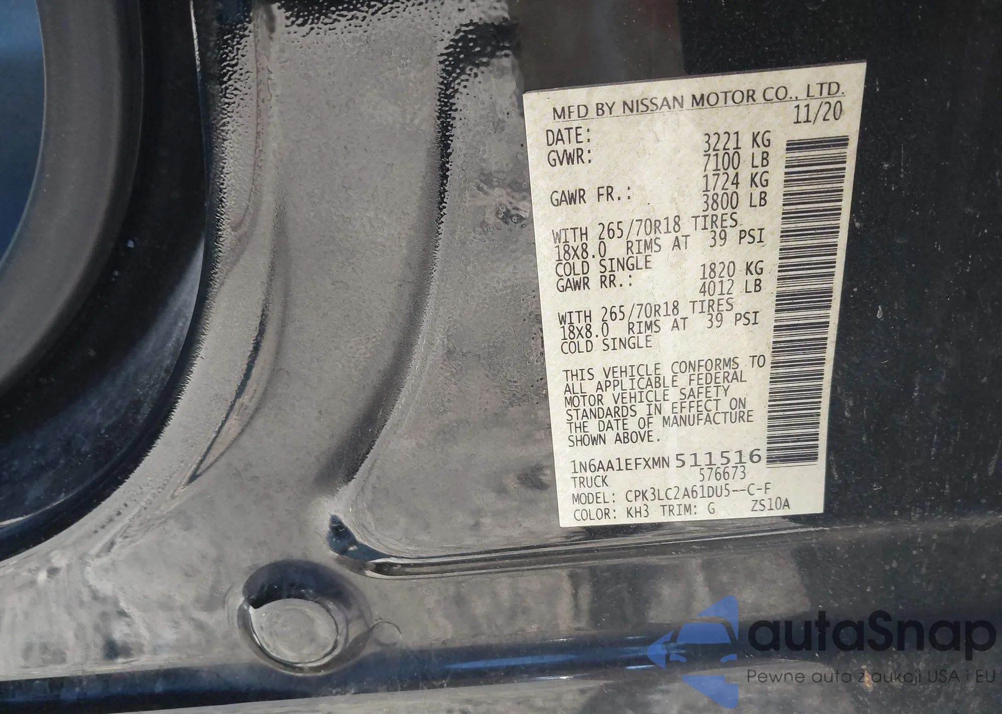 LOT: 43133041 VIN: 1N6AA1EFXMN511516