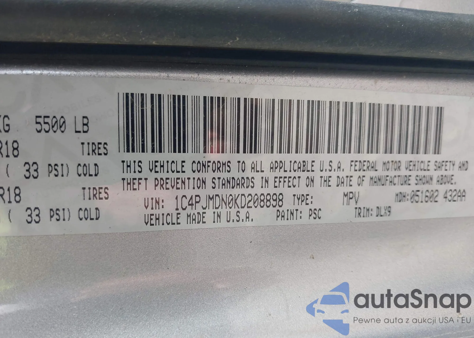 LOT: 43135172 VIN: JA4AR3AU5KU033644