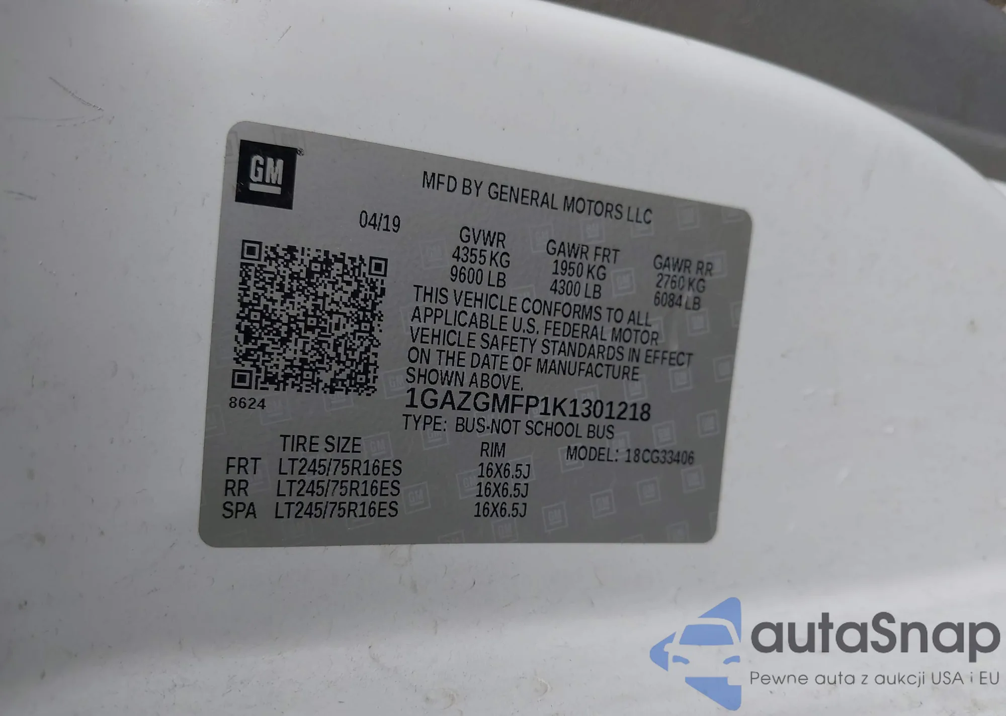 LOT: 43293579 VIN: 1GCGTDE36G1195137