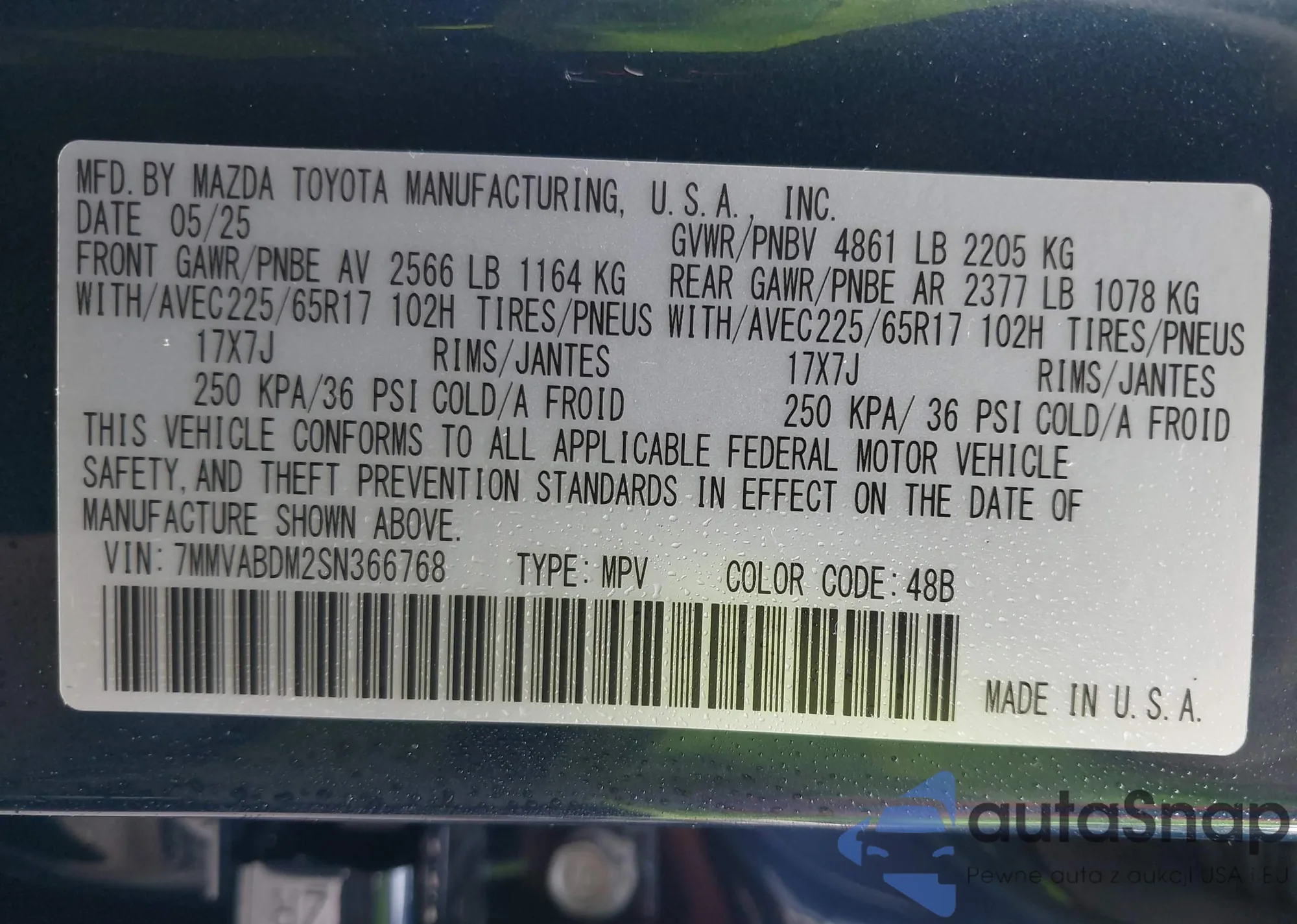 • VIN 7MMVABDM2SN366768