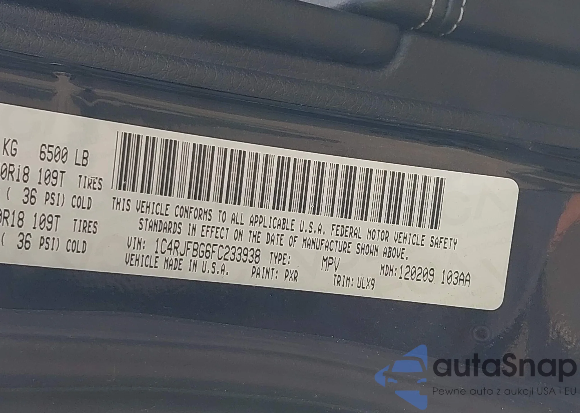 • VIN 1C4RJFBG6FC233938