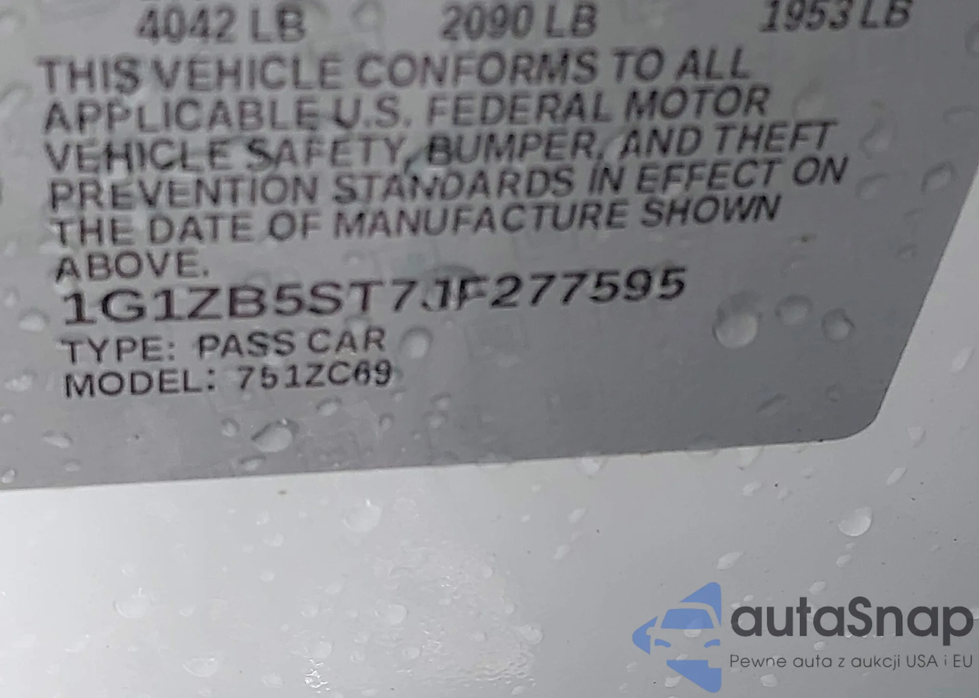 • VIN 1G1ZB5ST7JF277595