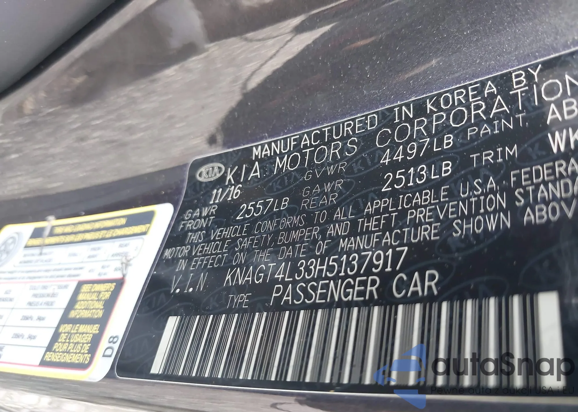 LOT: 43326440 VIN: 1G6AN5SY0G0148569