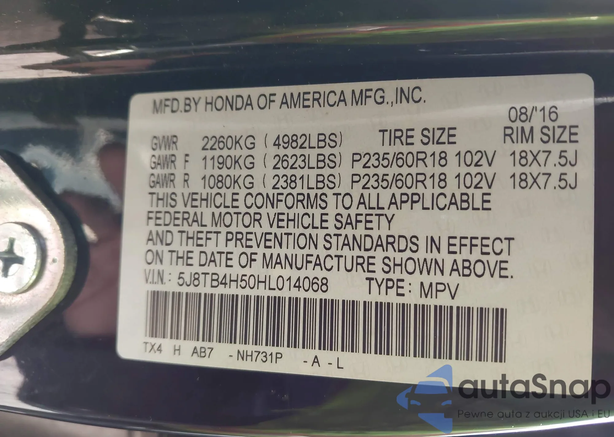 • VIN 5J8TB4H50HL014068