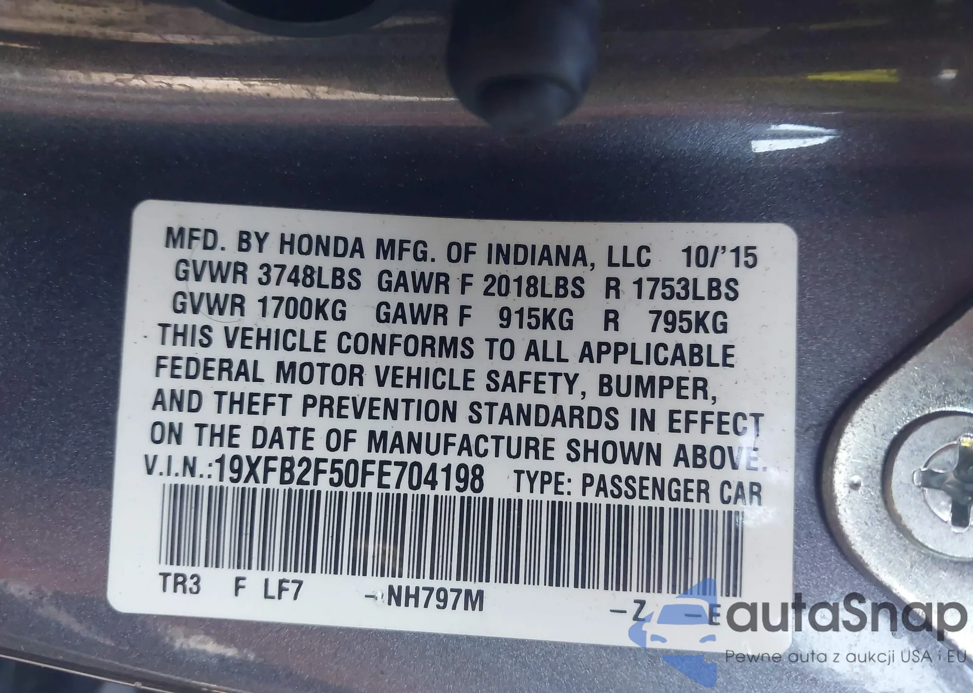 LOT: 43370952 VIN: 1HGCR2F53DA176429
