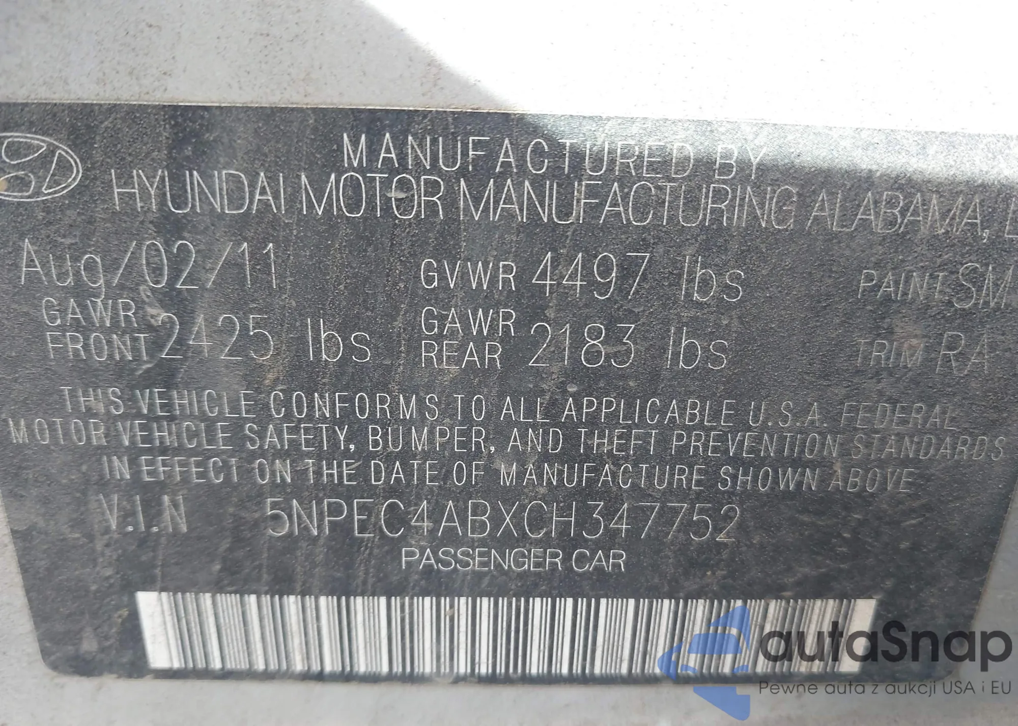 • VIN 5NPEC4ABXCH347752