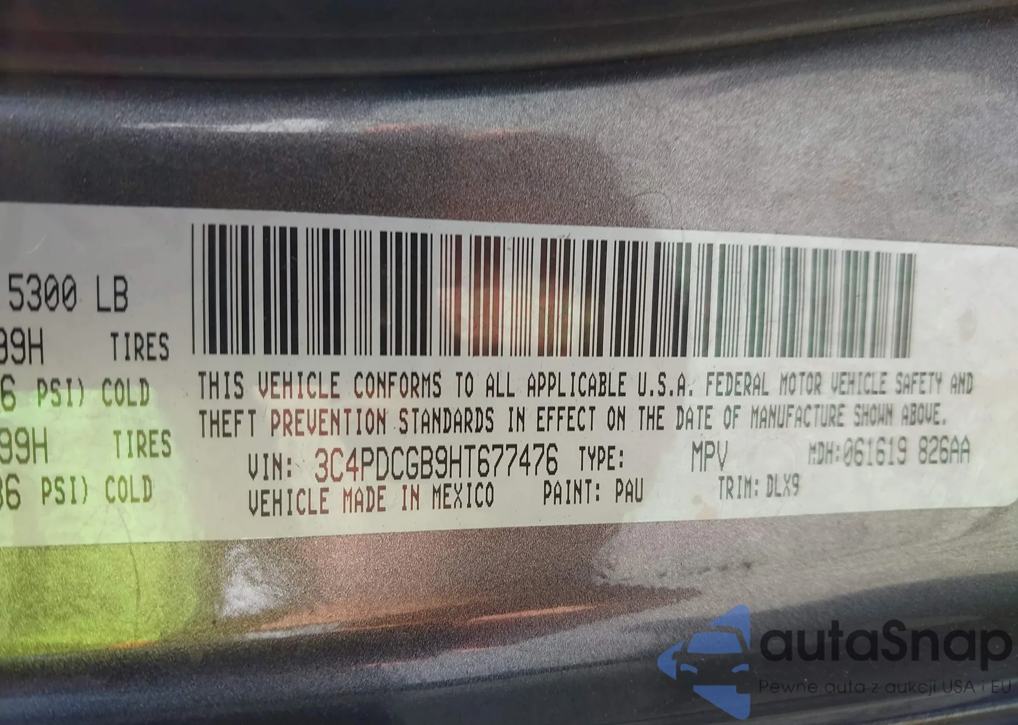 LOT: 43301924 VIN: 3C4PDCGB9HT677476
