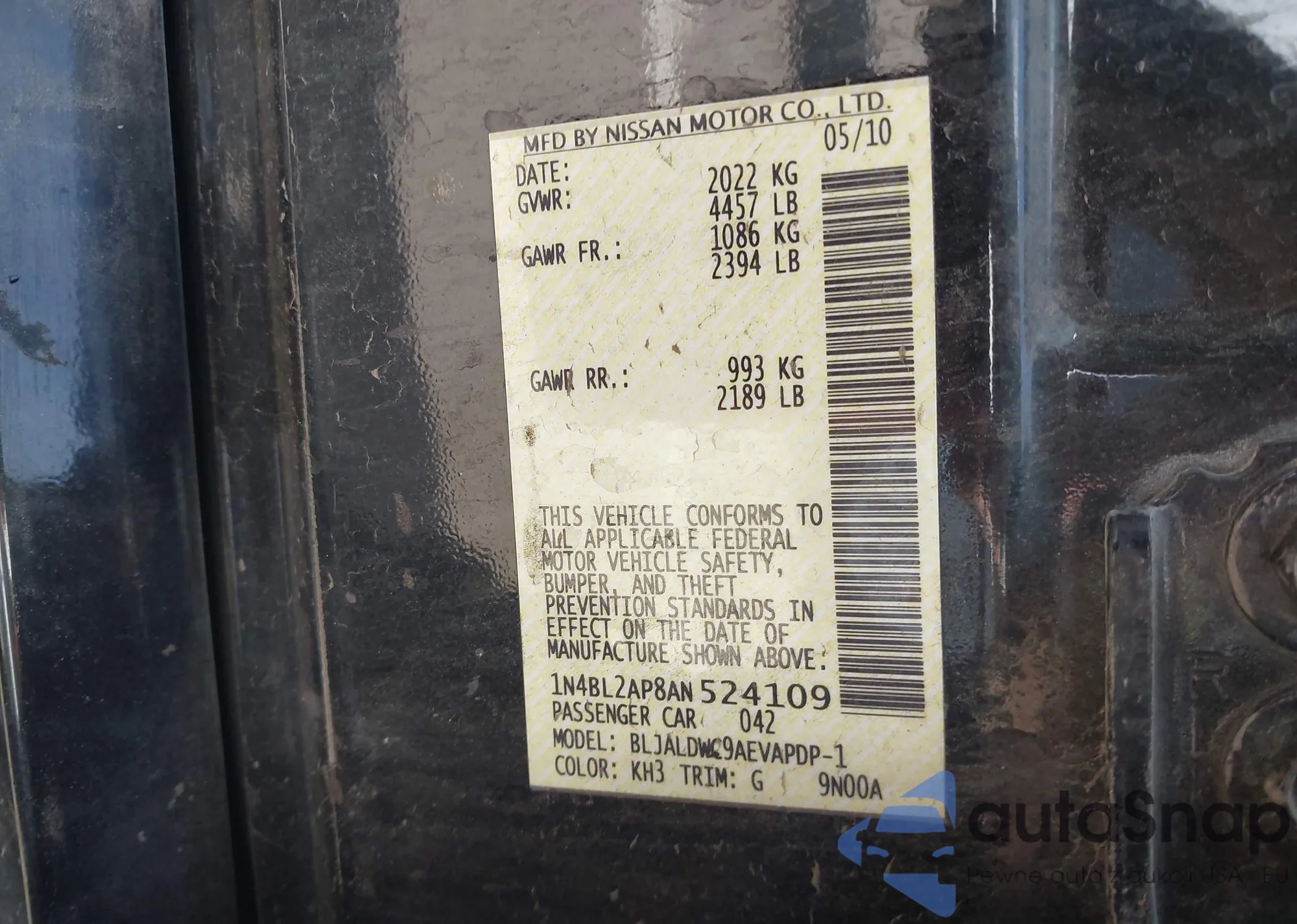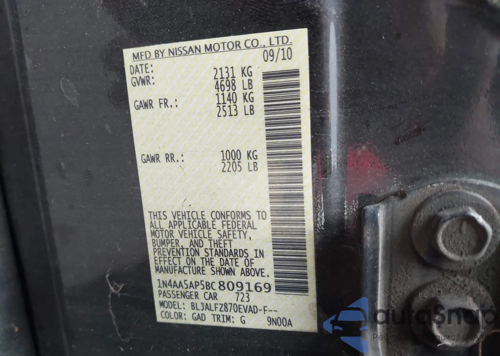 • VIN 1N4AA5AP5BC809169