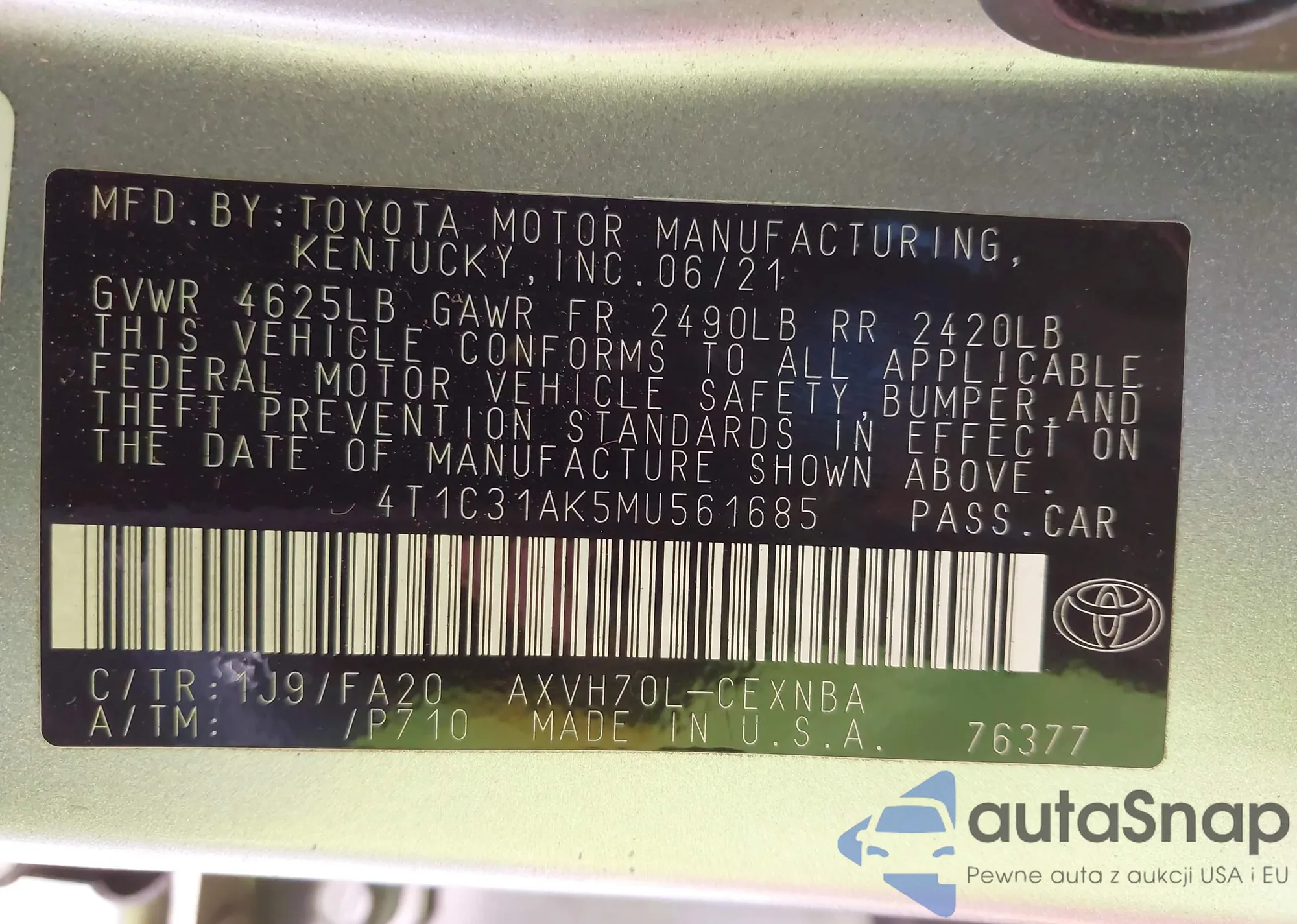 LOT: 43412618 VIN: 7SAYGAEE2PF763662