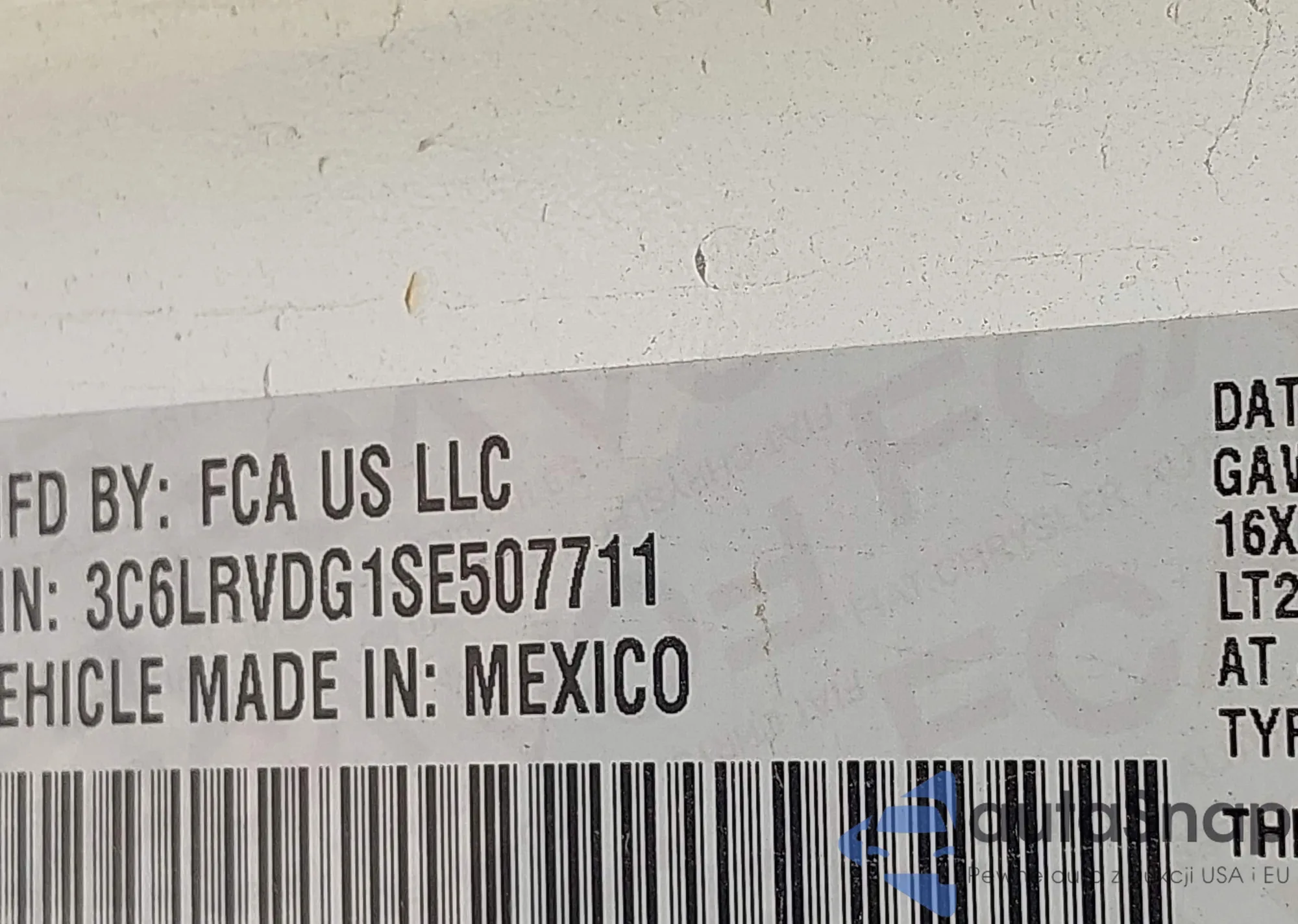 • VIN 3C6LRVDG1SE507711