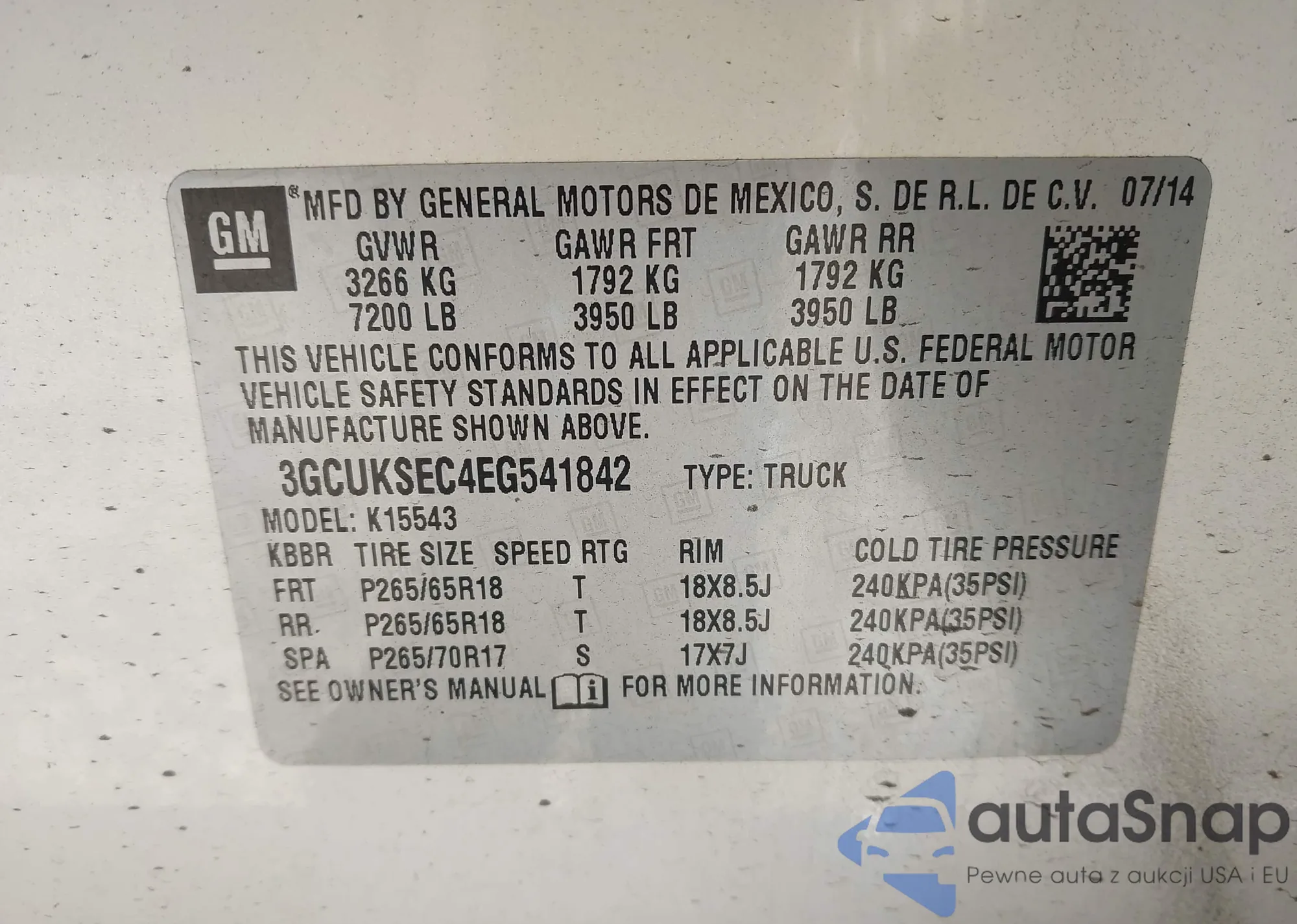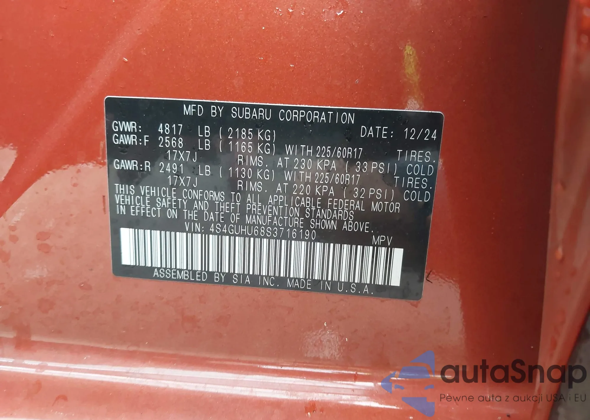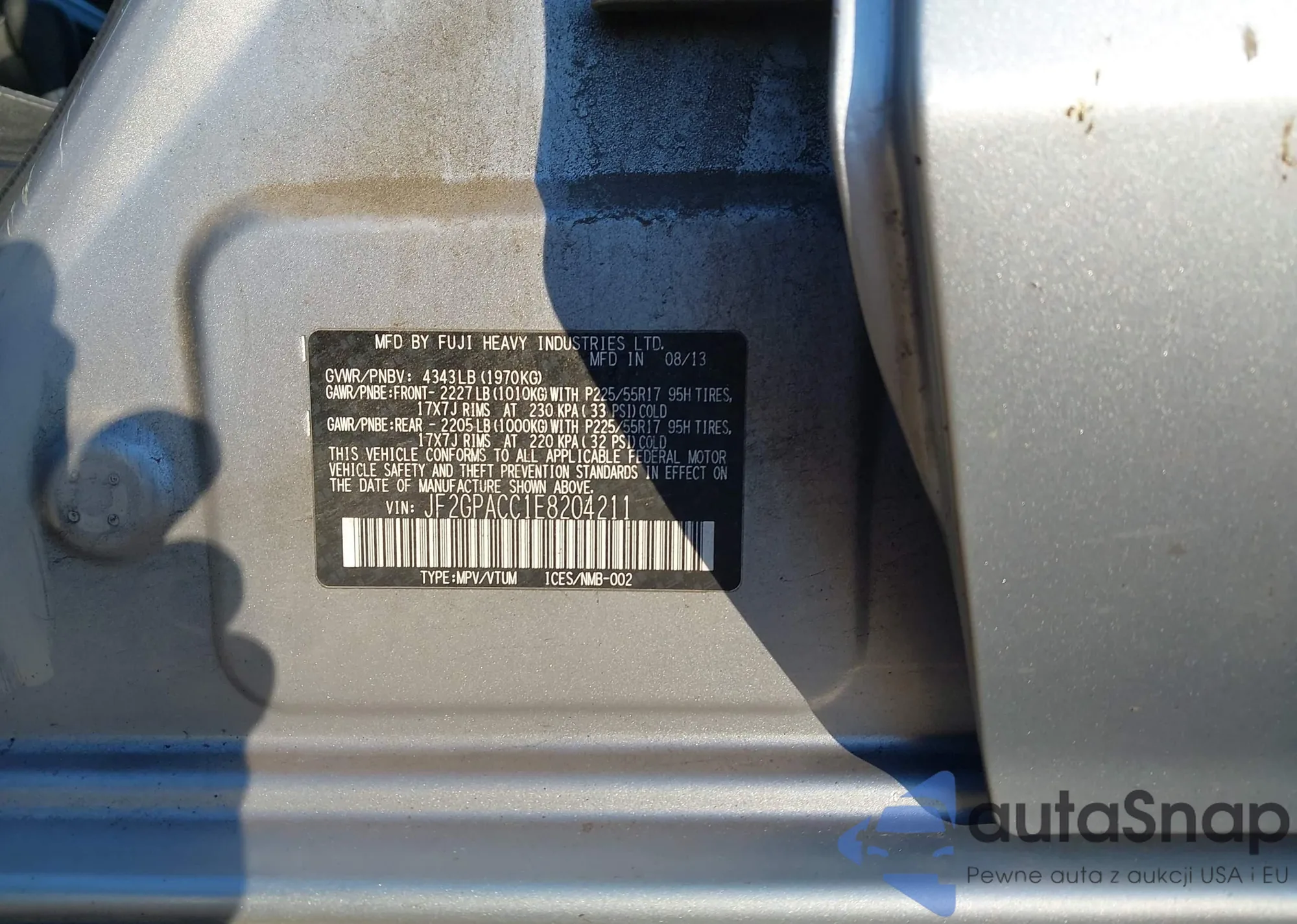 LOT: 43415097 VIN: JF2GPACC1E8204211