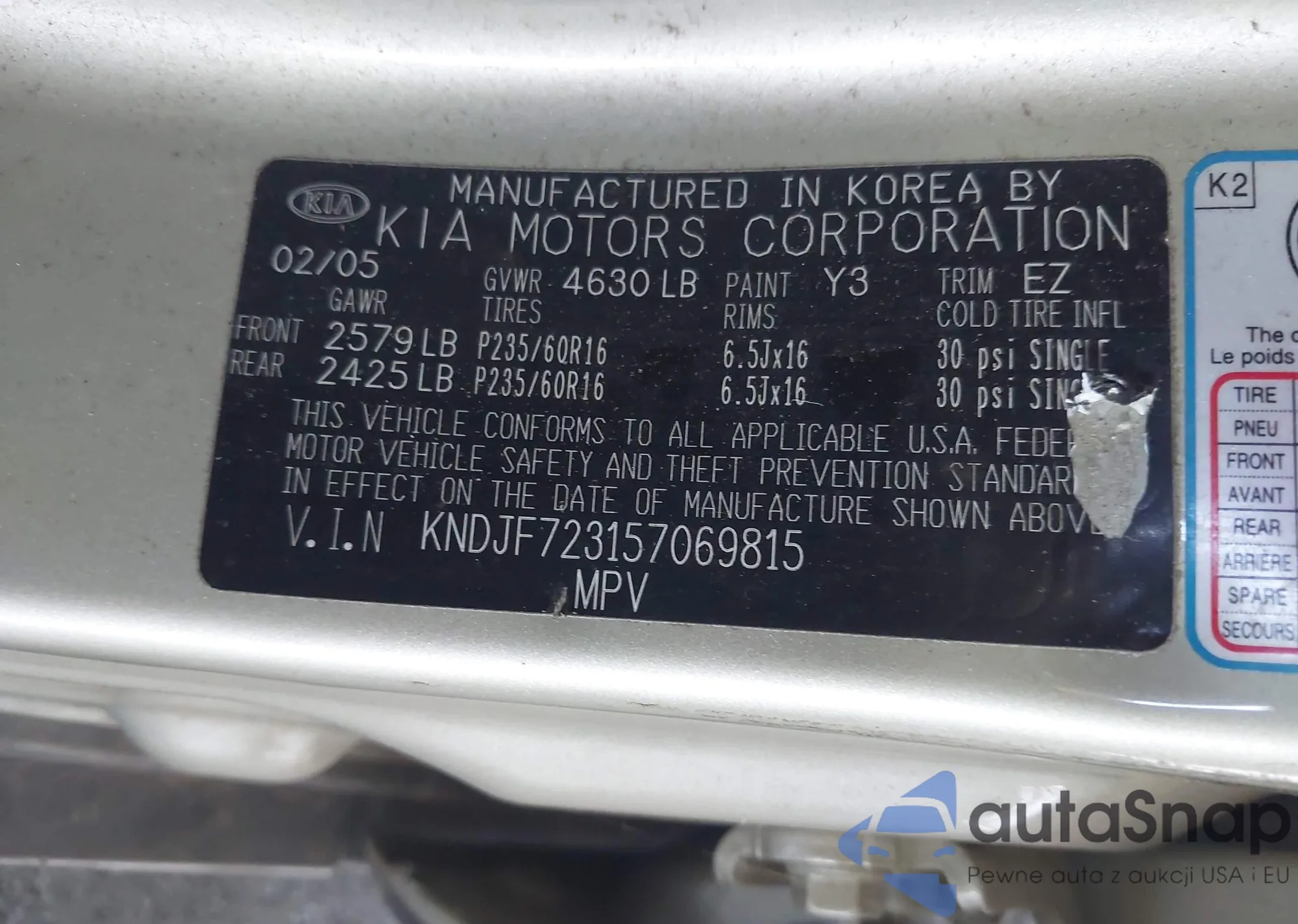 LOT: 43409269 VIN: KNDJF723157069815
