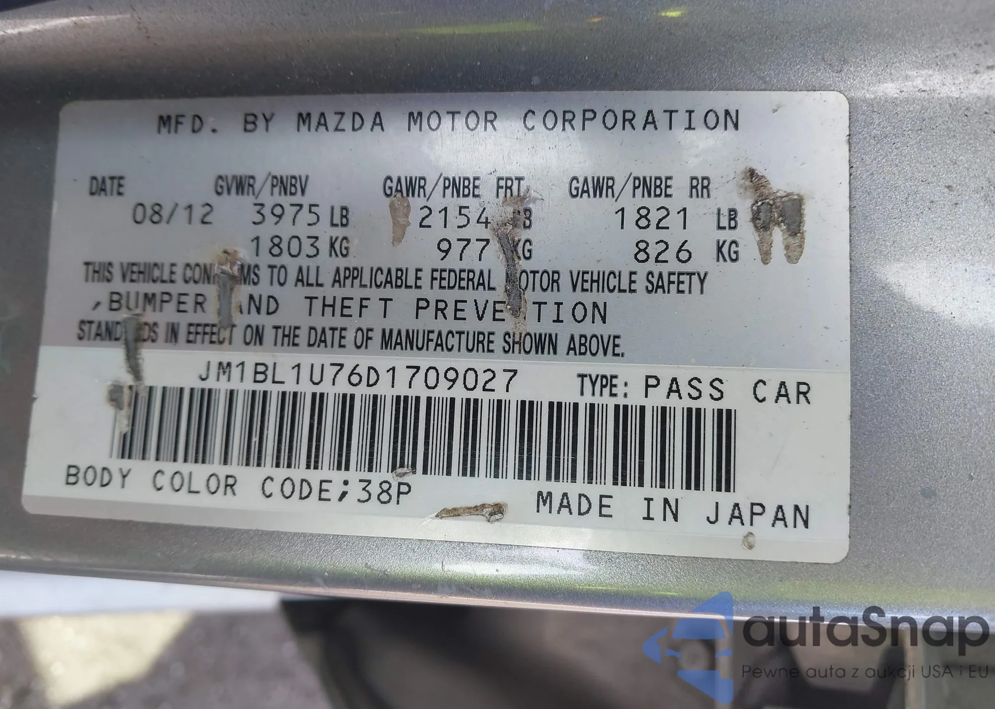 LOT: 43421572 VIN: JM1BL1U76D1709027