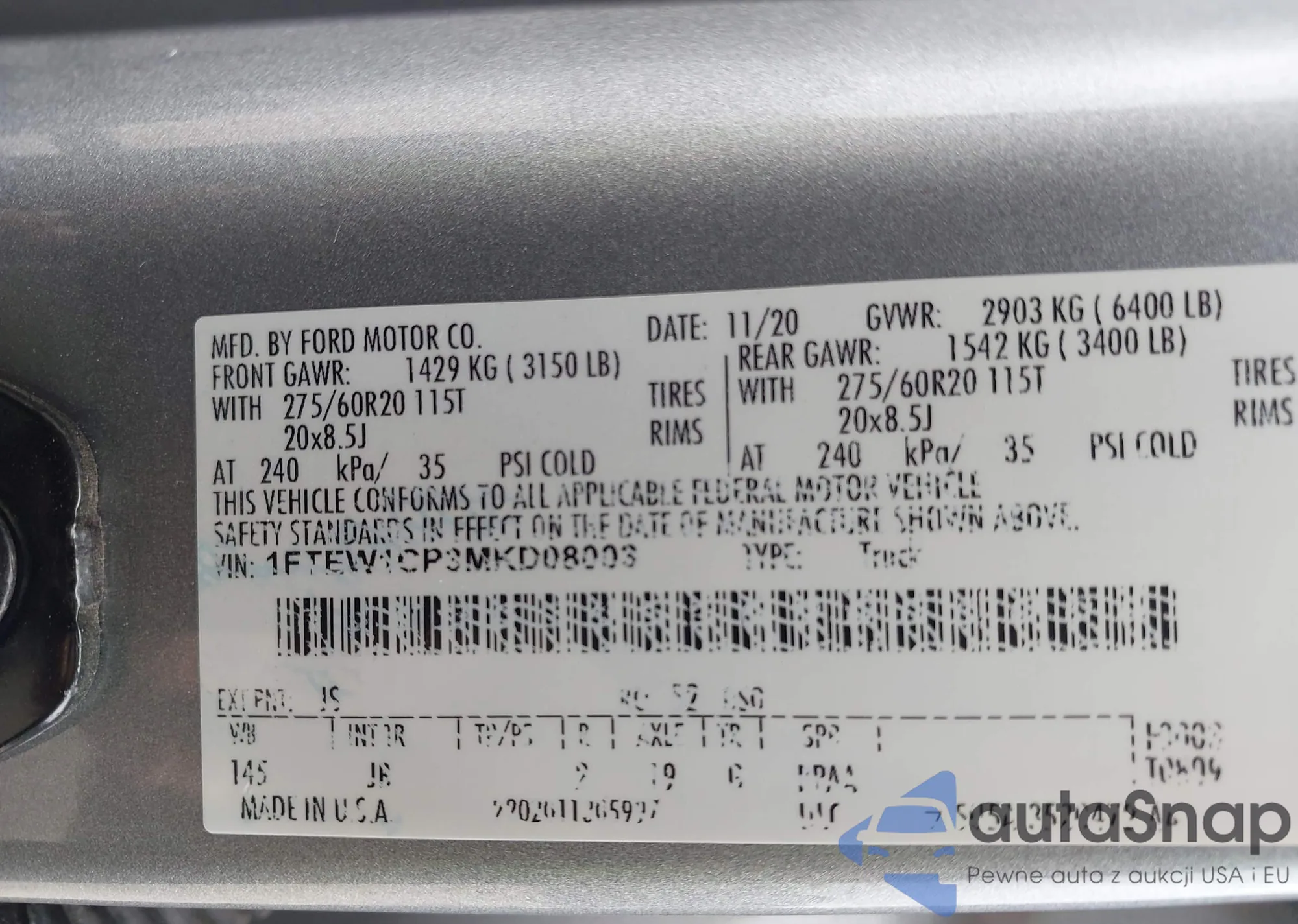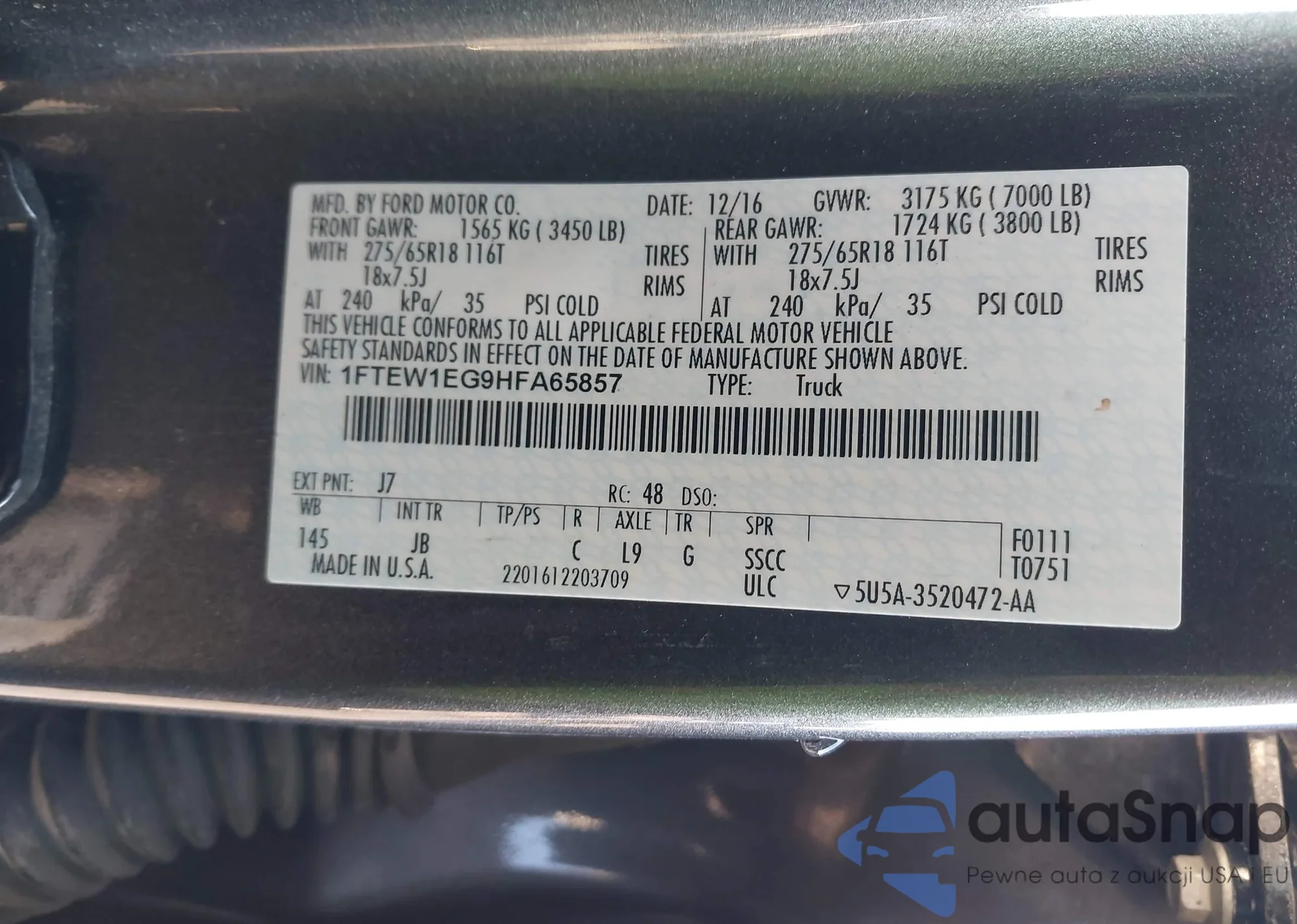 LOT: 43411141 VIN: 1FTEW1EG9HFA65857