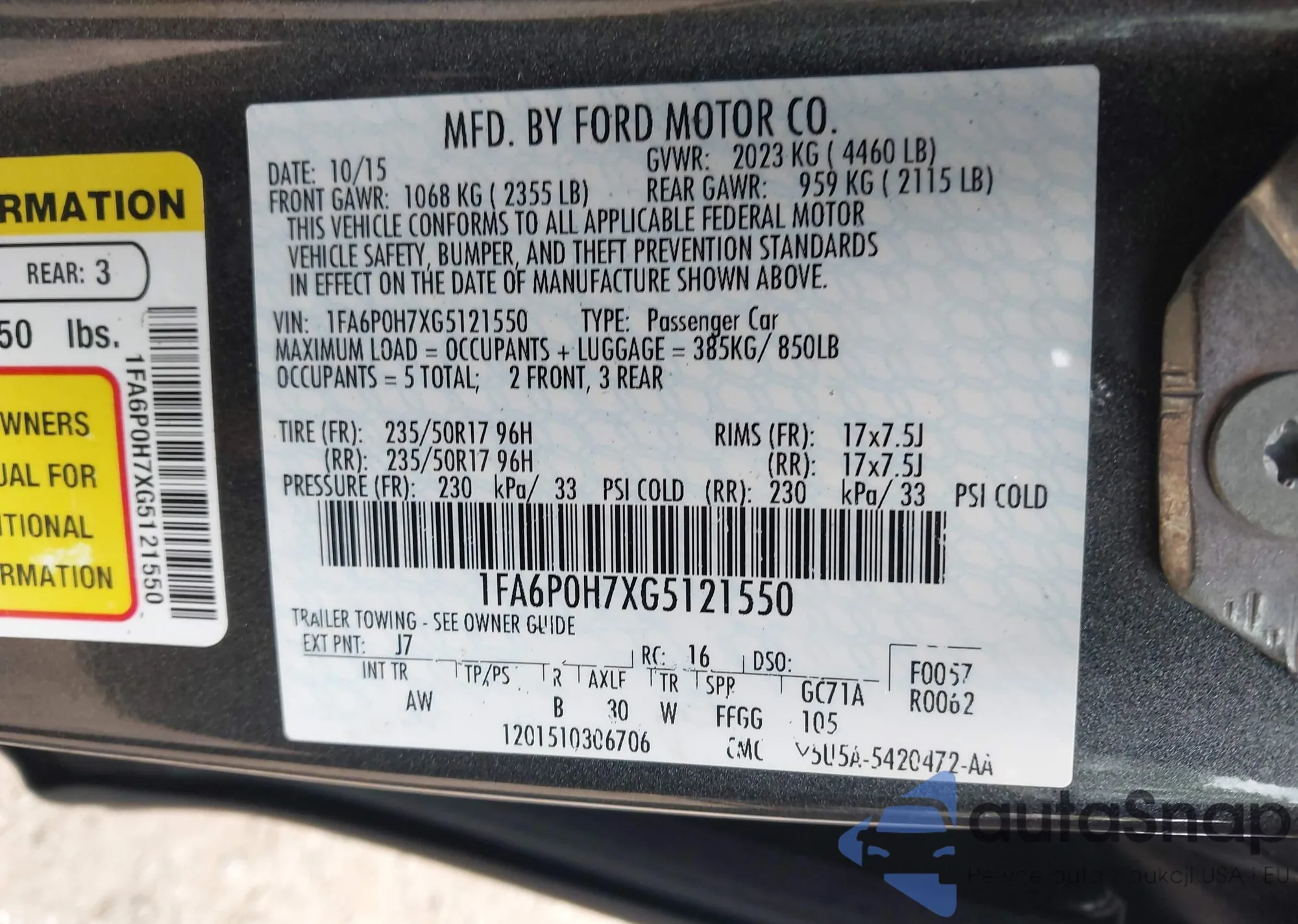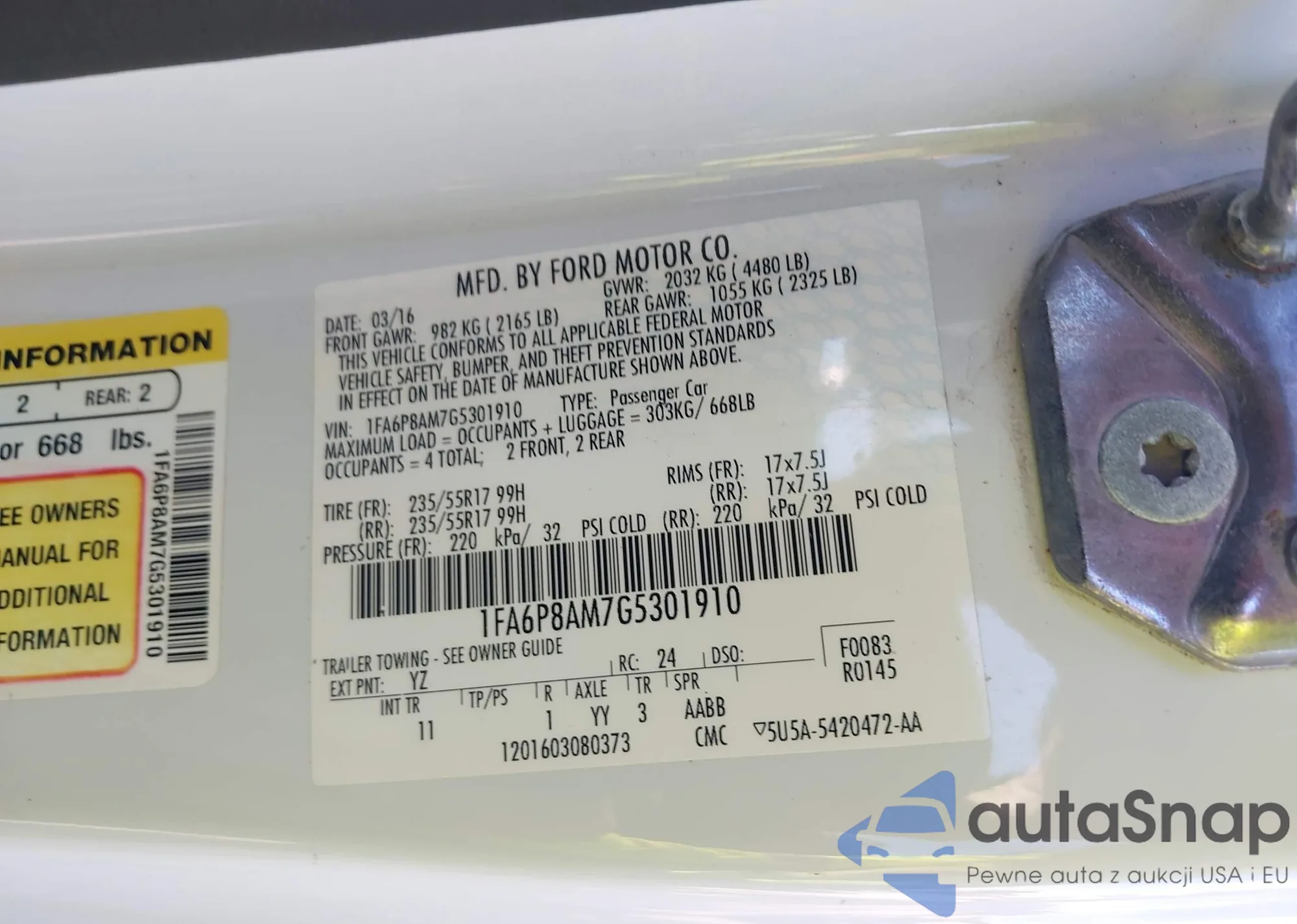 • VIN 1FA6P8AM7G5301910