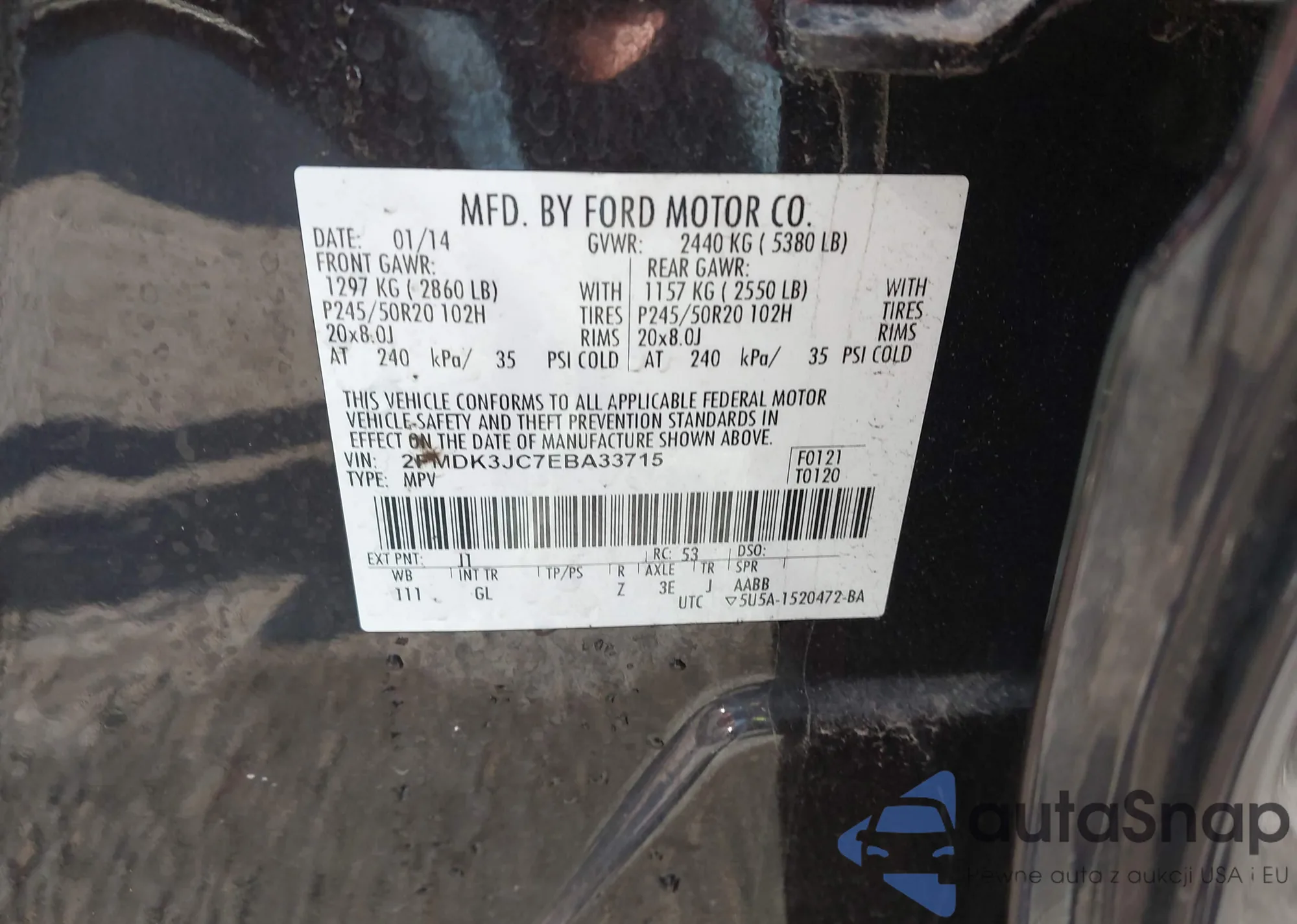 • VIN 2FMDK3JC7EBA33715