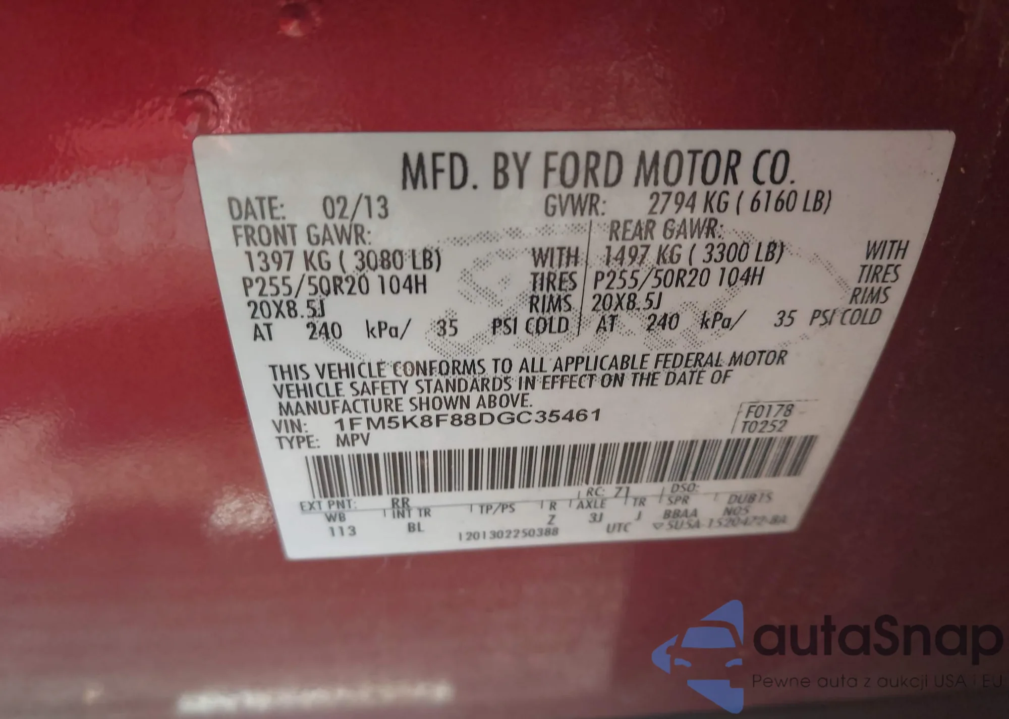 • VIN 1FM5K8F88DGC35461