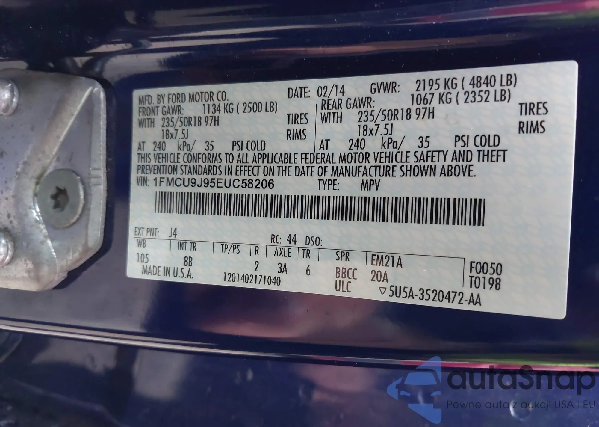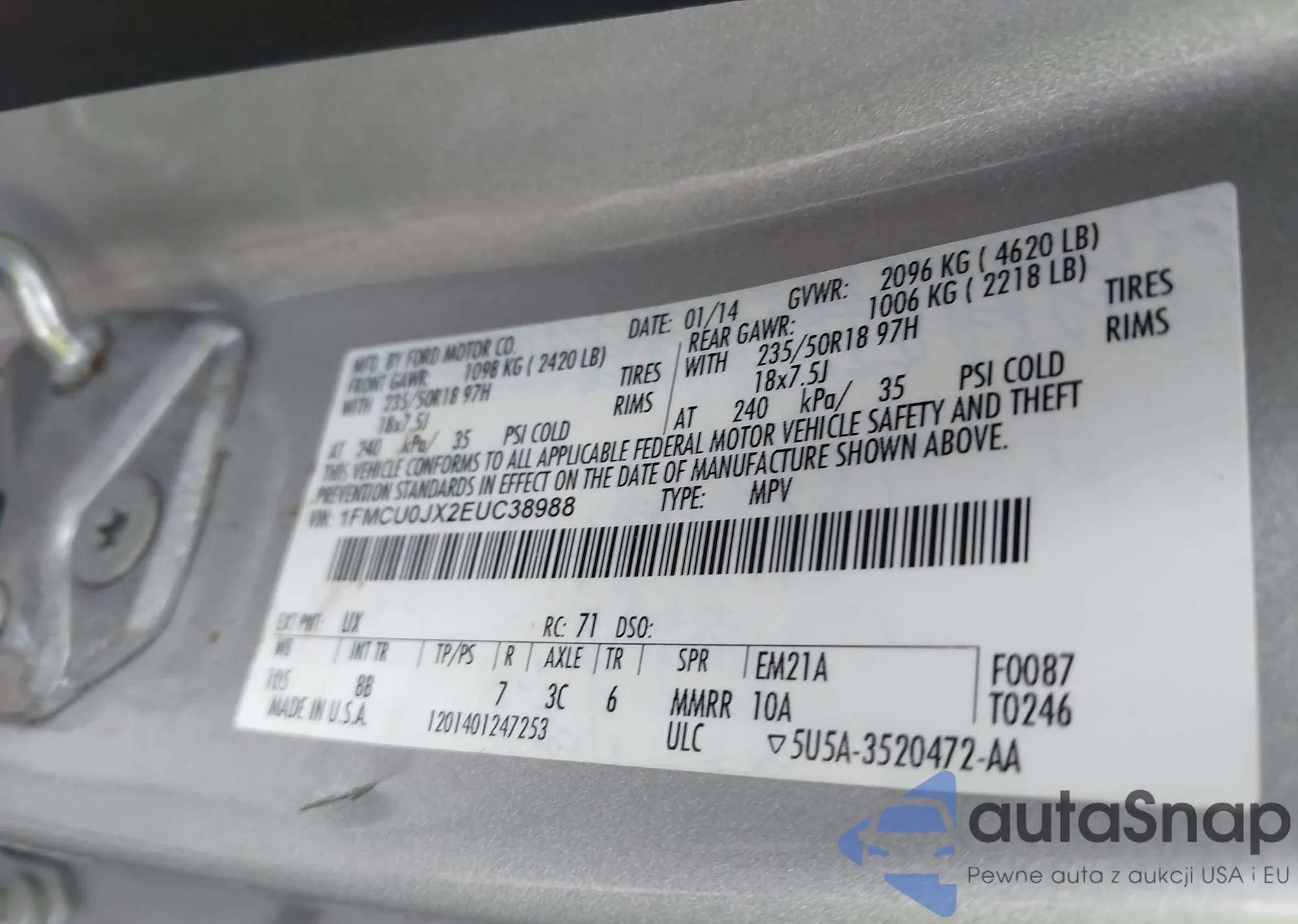 LOT: 43382982 VIN: 1FMCU0JX2EUC38988