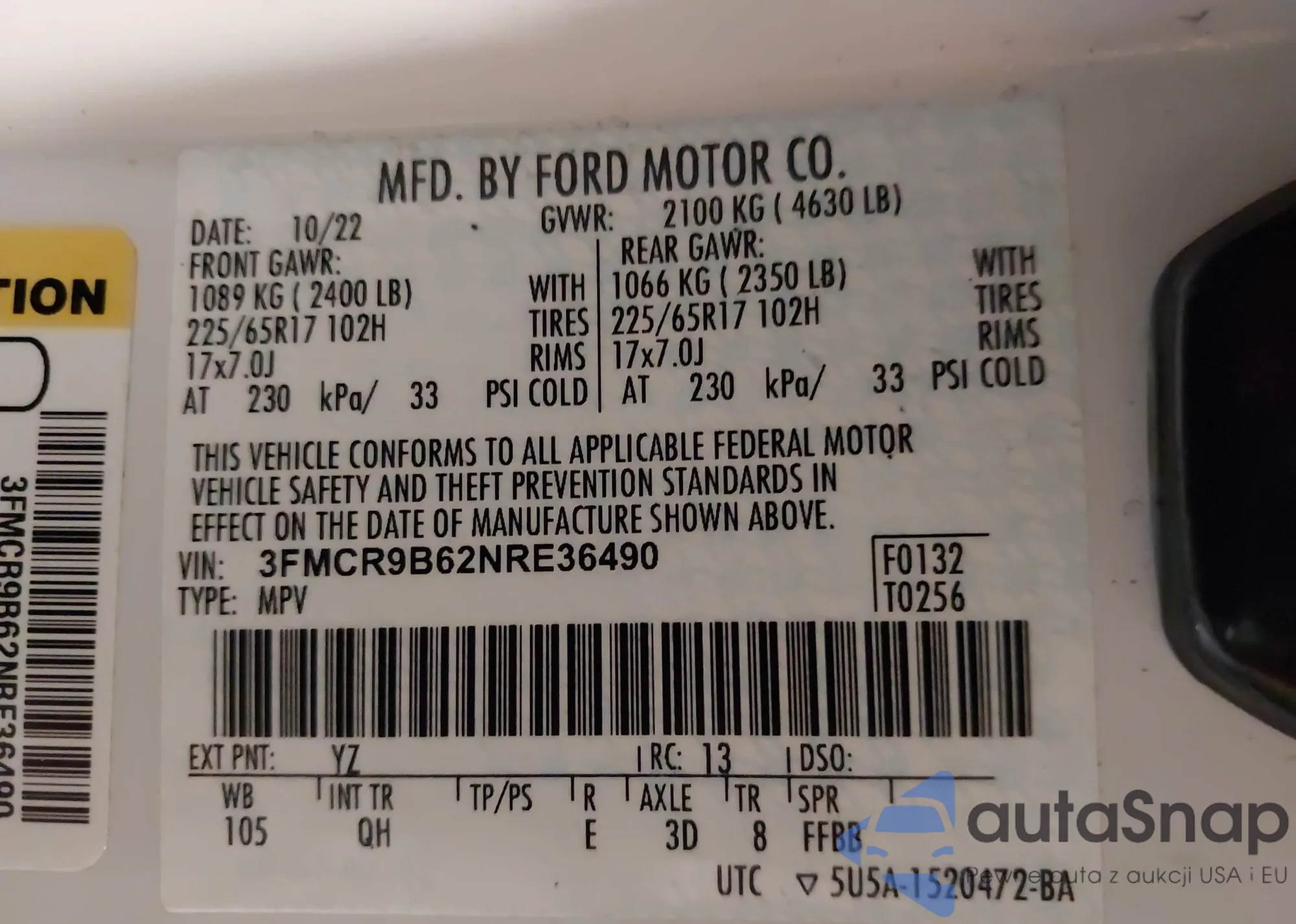 • VIN 3FMCR9B62NRE36490