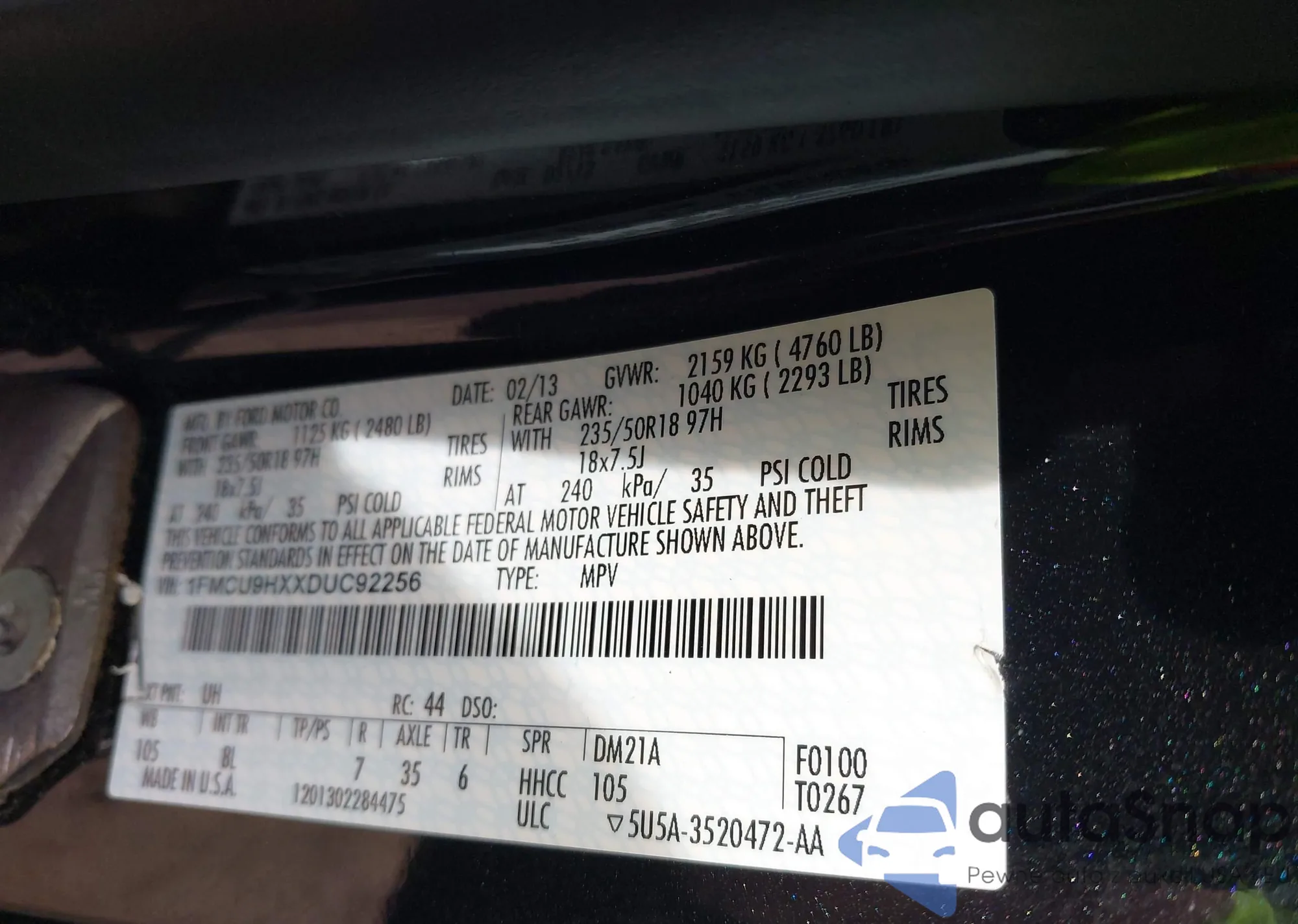 LOT: 43460799 VIN: 1FMCU9HXXDUC92256