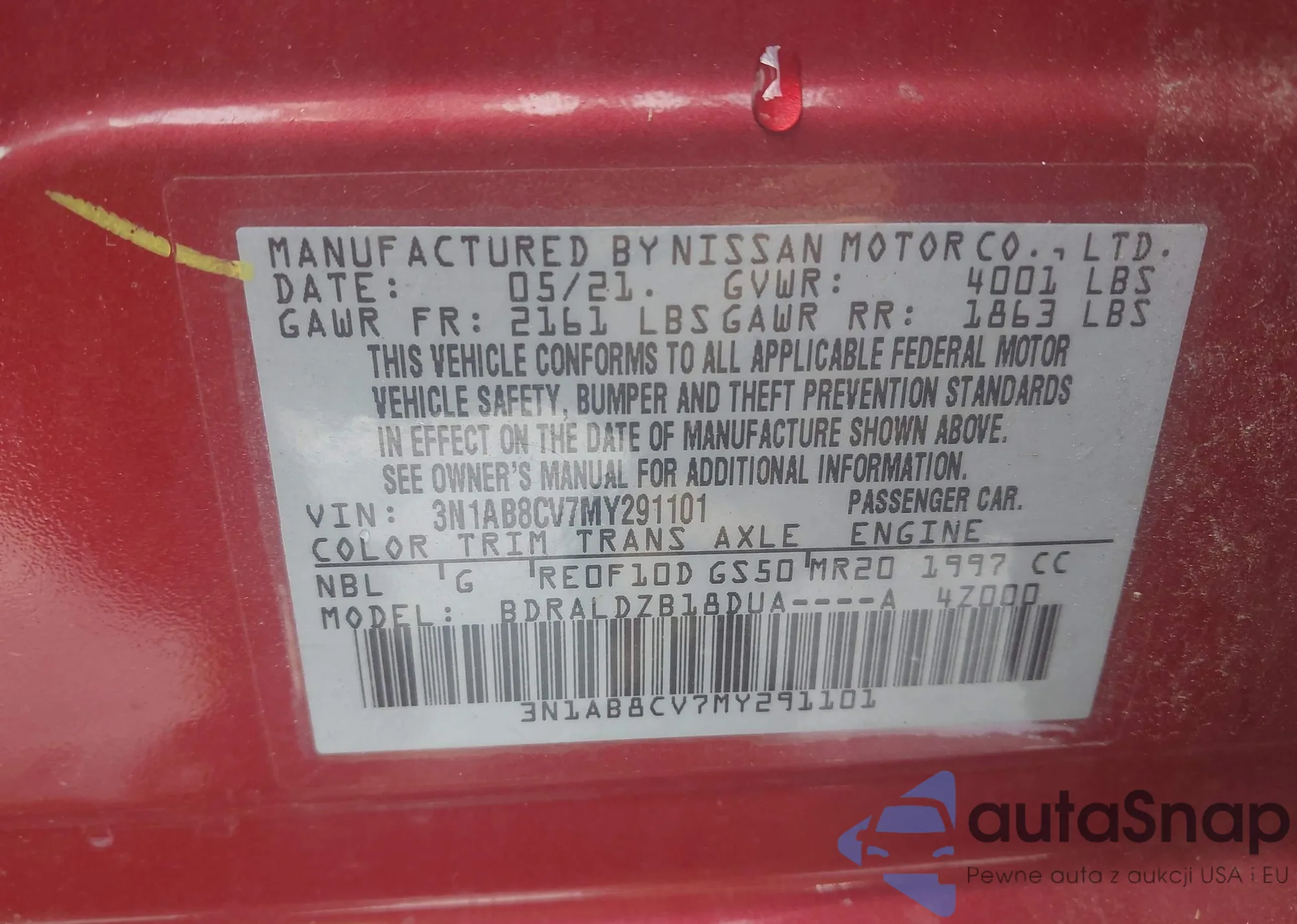 • VIN 3N1AB8CV7MY291101