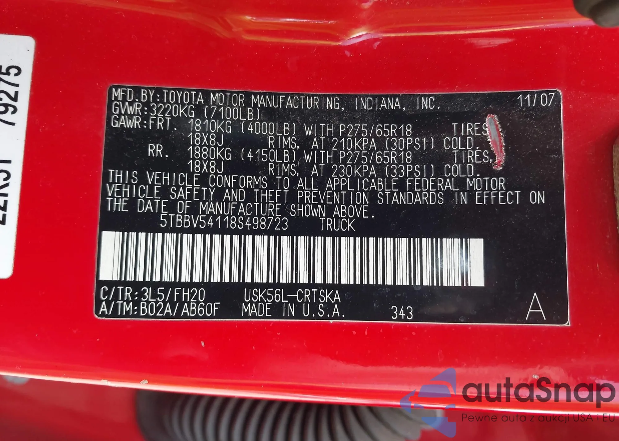 • VIN 5TBBV54118S498723