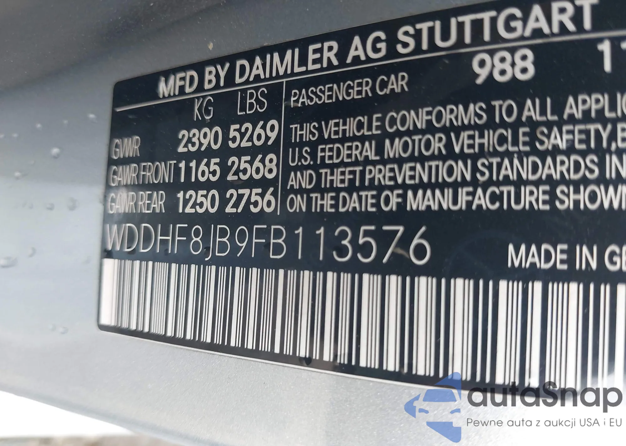 • VIN WDDHF8JB9FB113576