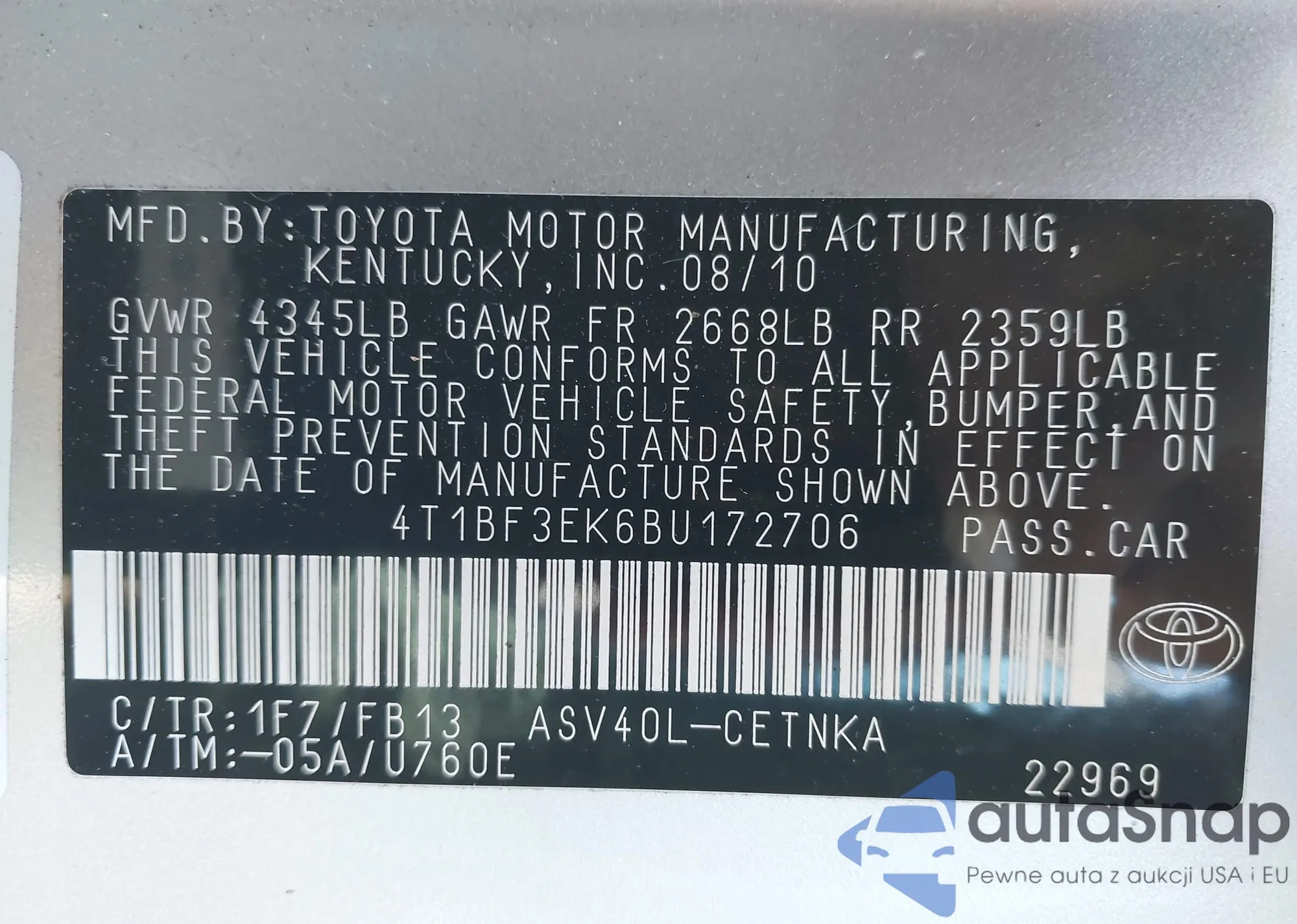 LOT: 43422154 VIN: JTDBT923171062426