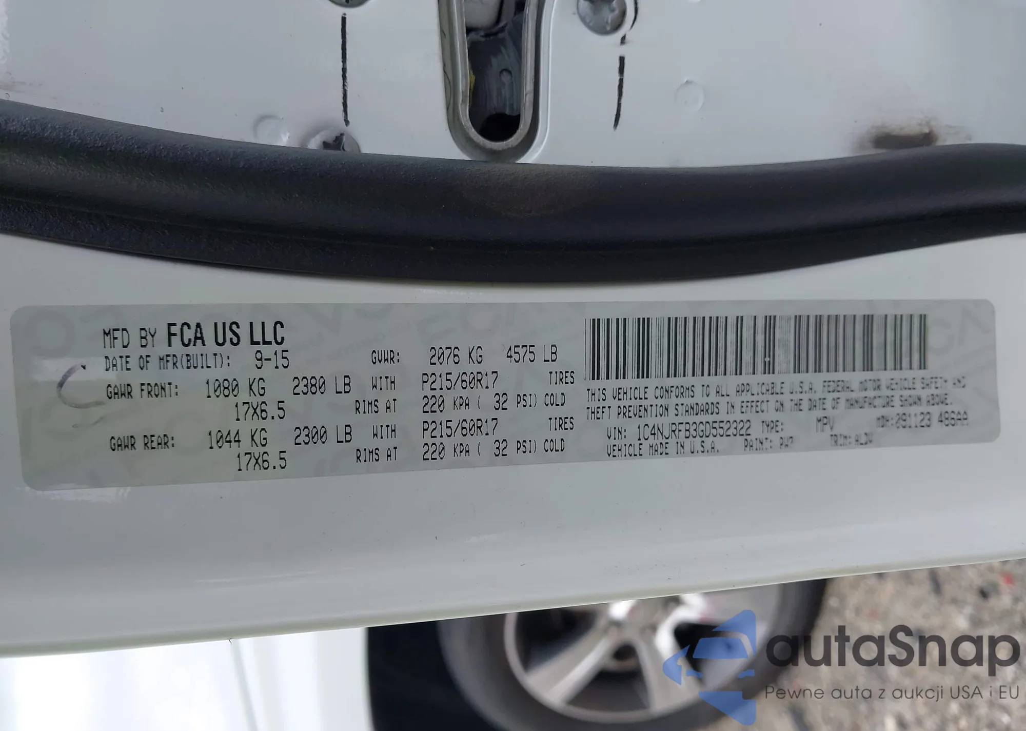 LOT: 43033627 VIN: 1C4NJRFB3GD552322