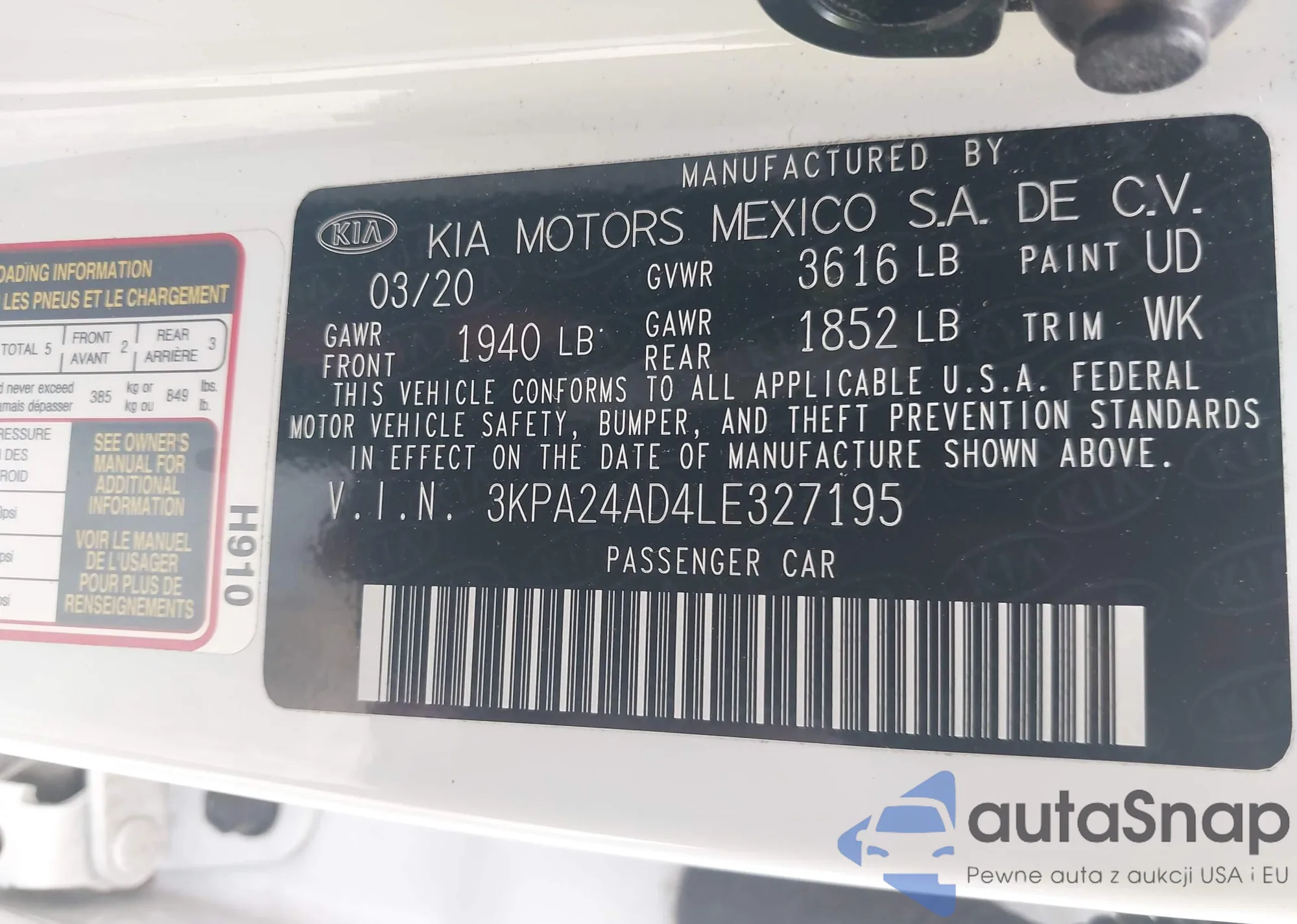 • VIN 3KPA24AD4LE327195