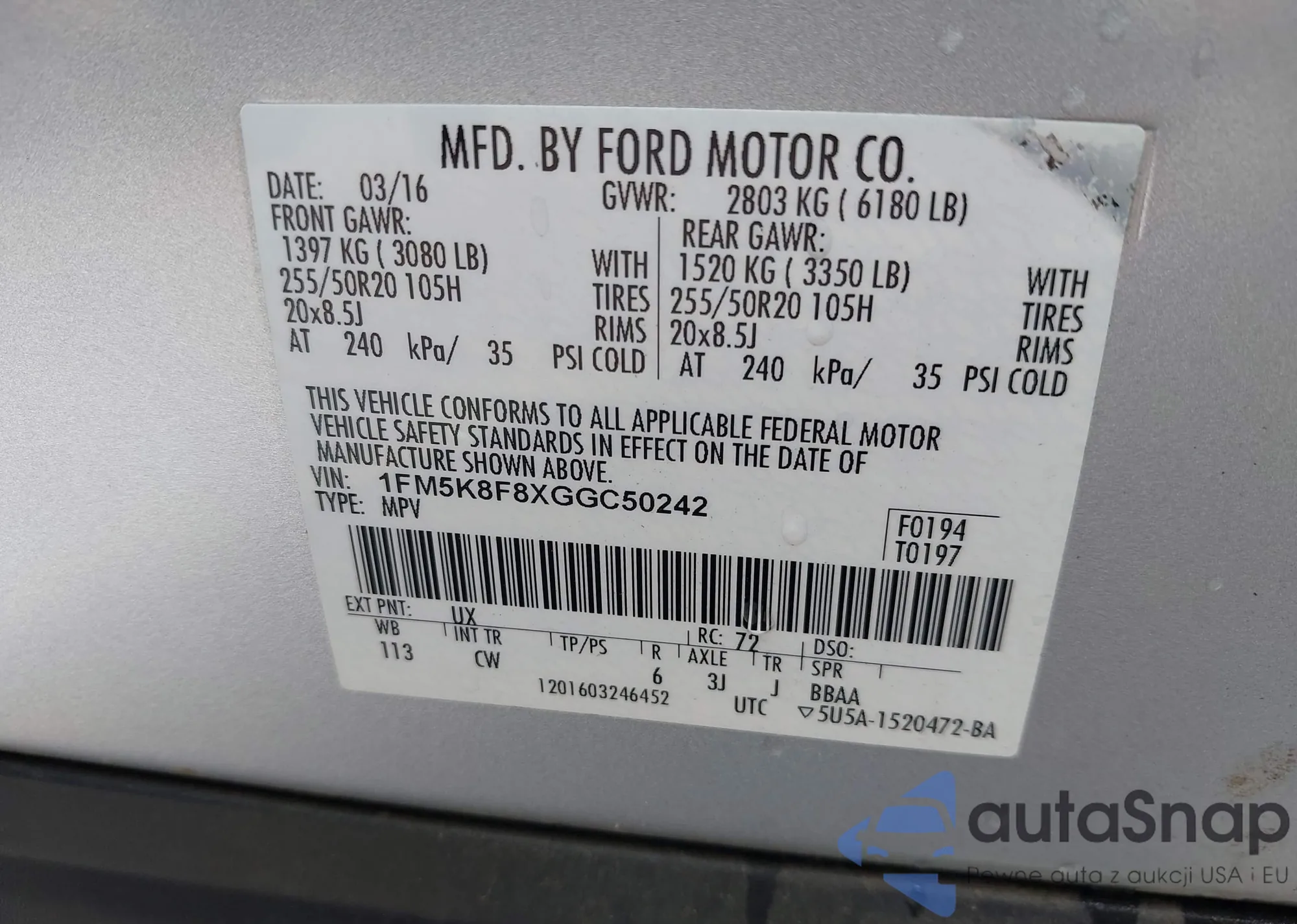 LOT: 43169944 VIN: KNMAT2MV2GP633646