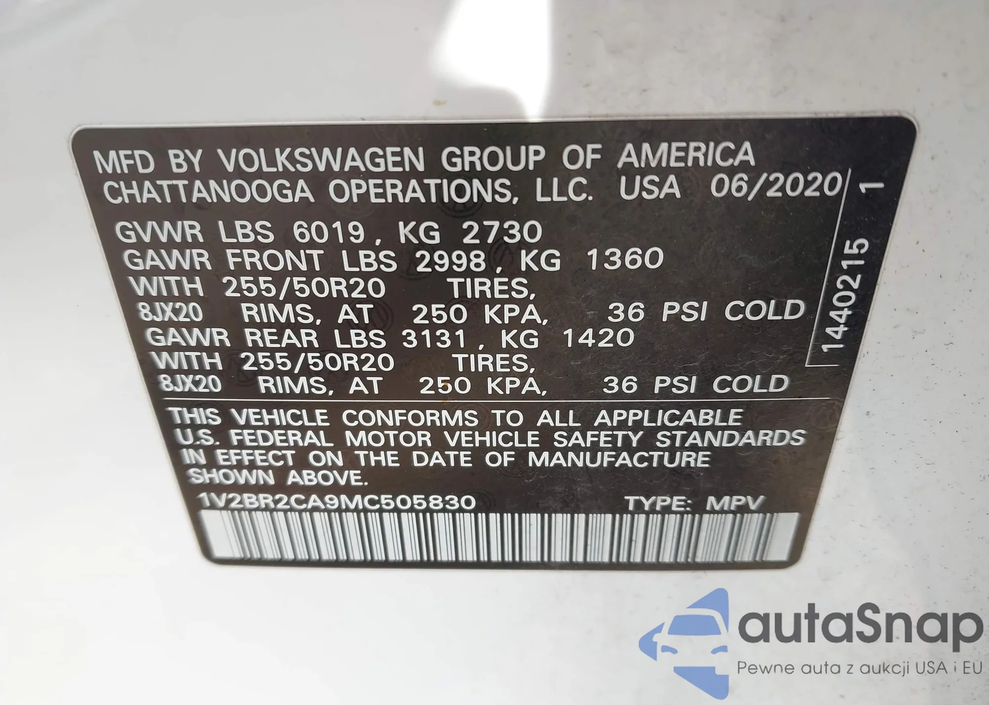 LOT: 43205470 VIN: 2GNAXHEV8L6108078