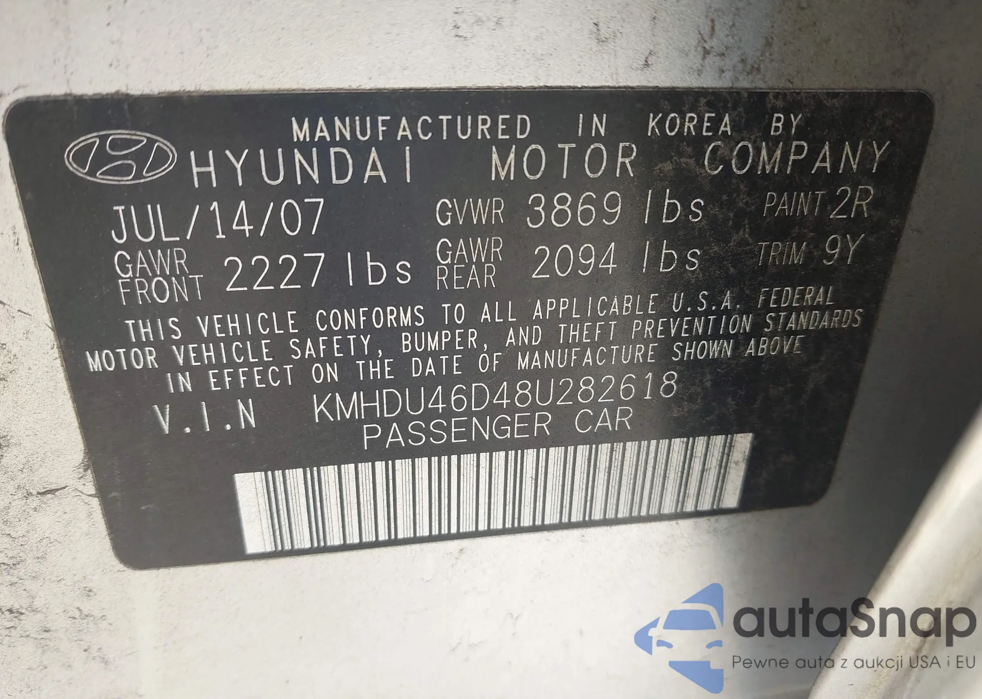 LOT: 43042545 VIN: KMHDU4AD7AU091983