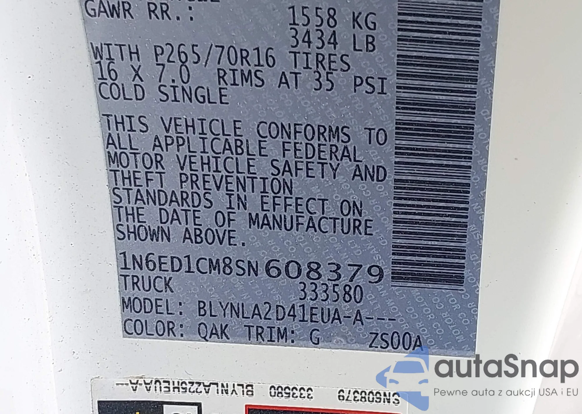 LOT: 43202179 VIN: 1N6ED1CM8SN608379