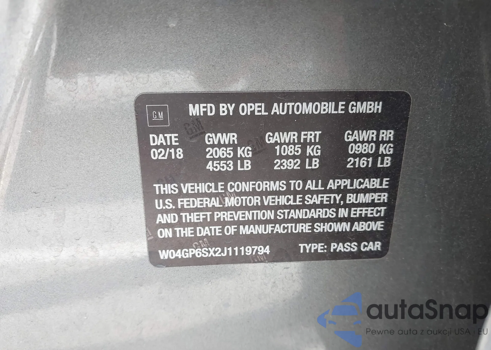 • VIN W04GP6SX2J1119794