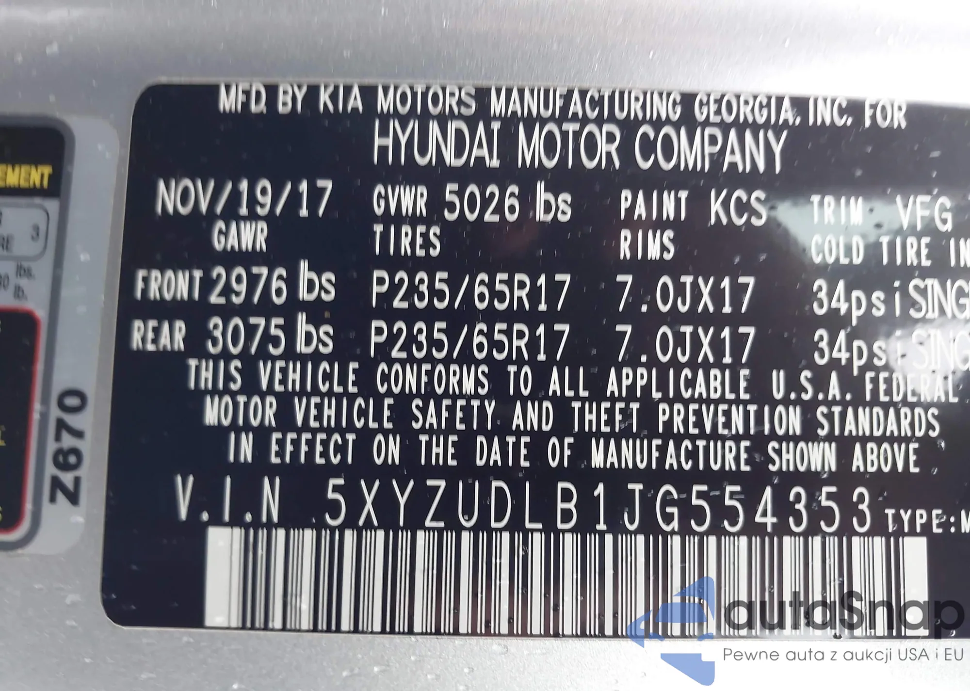 • VIN 5XYZUDLB1JG554353