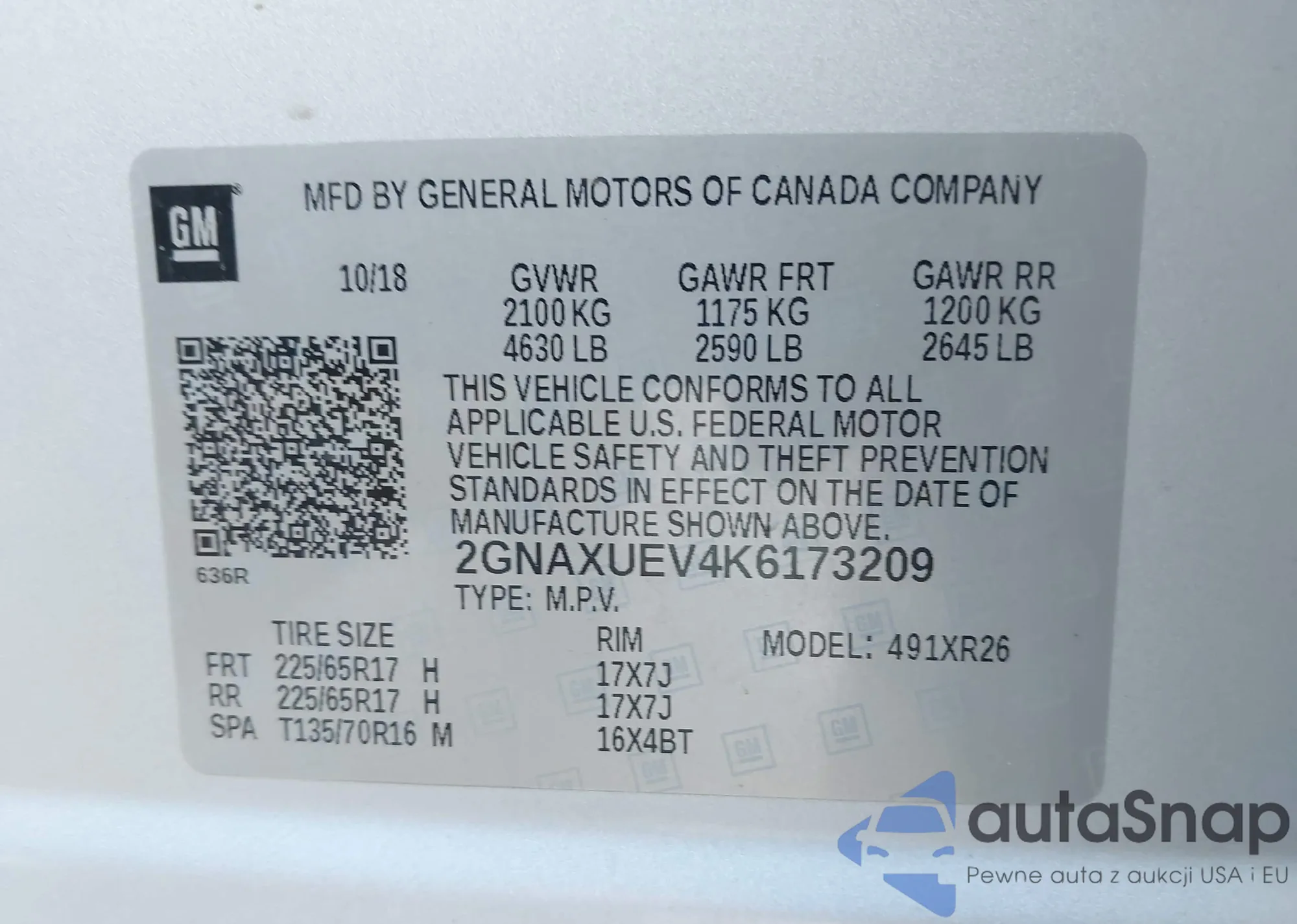 LOT: 43219604 VIN: 2GNAXUEV4K6173209