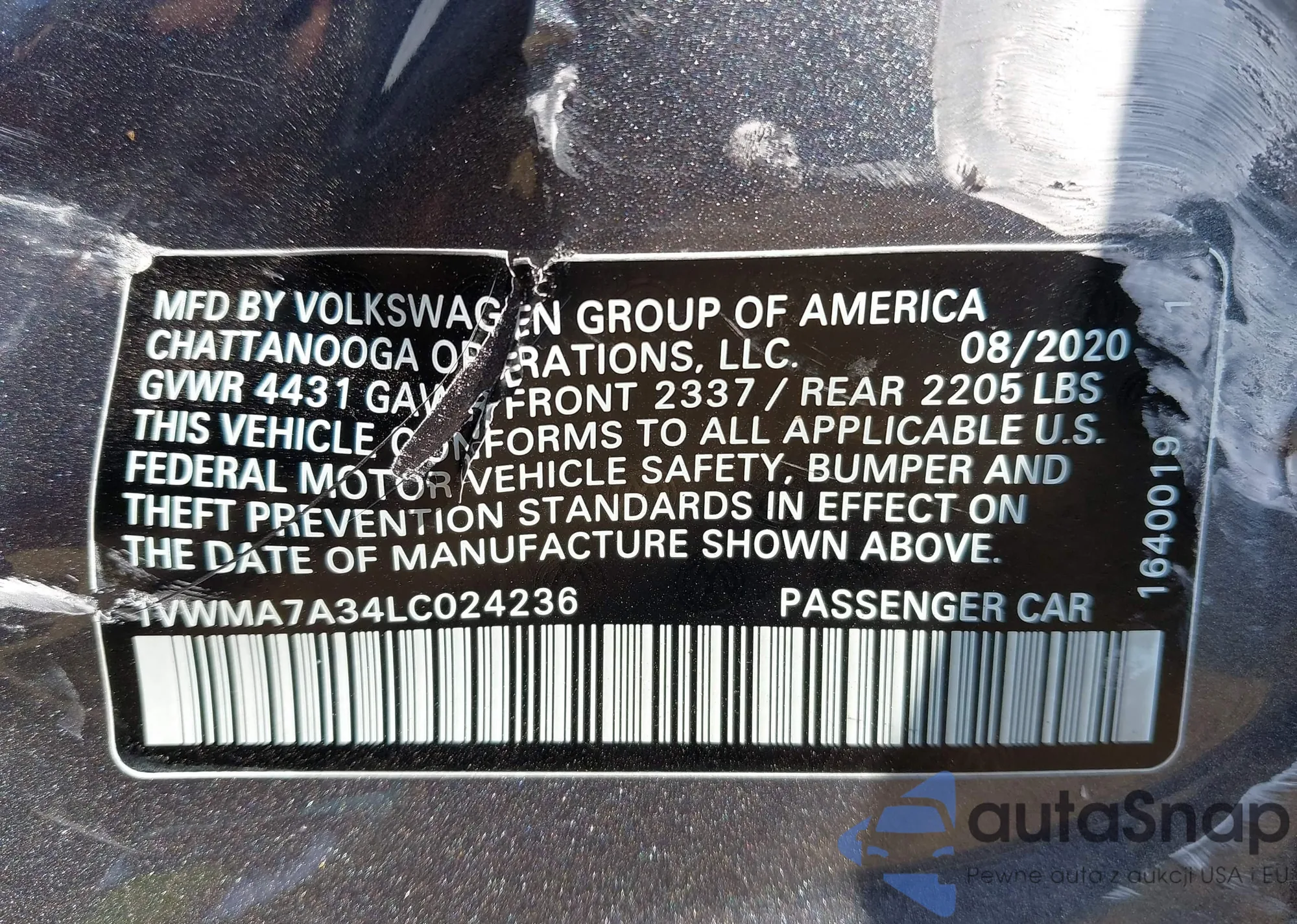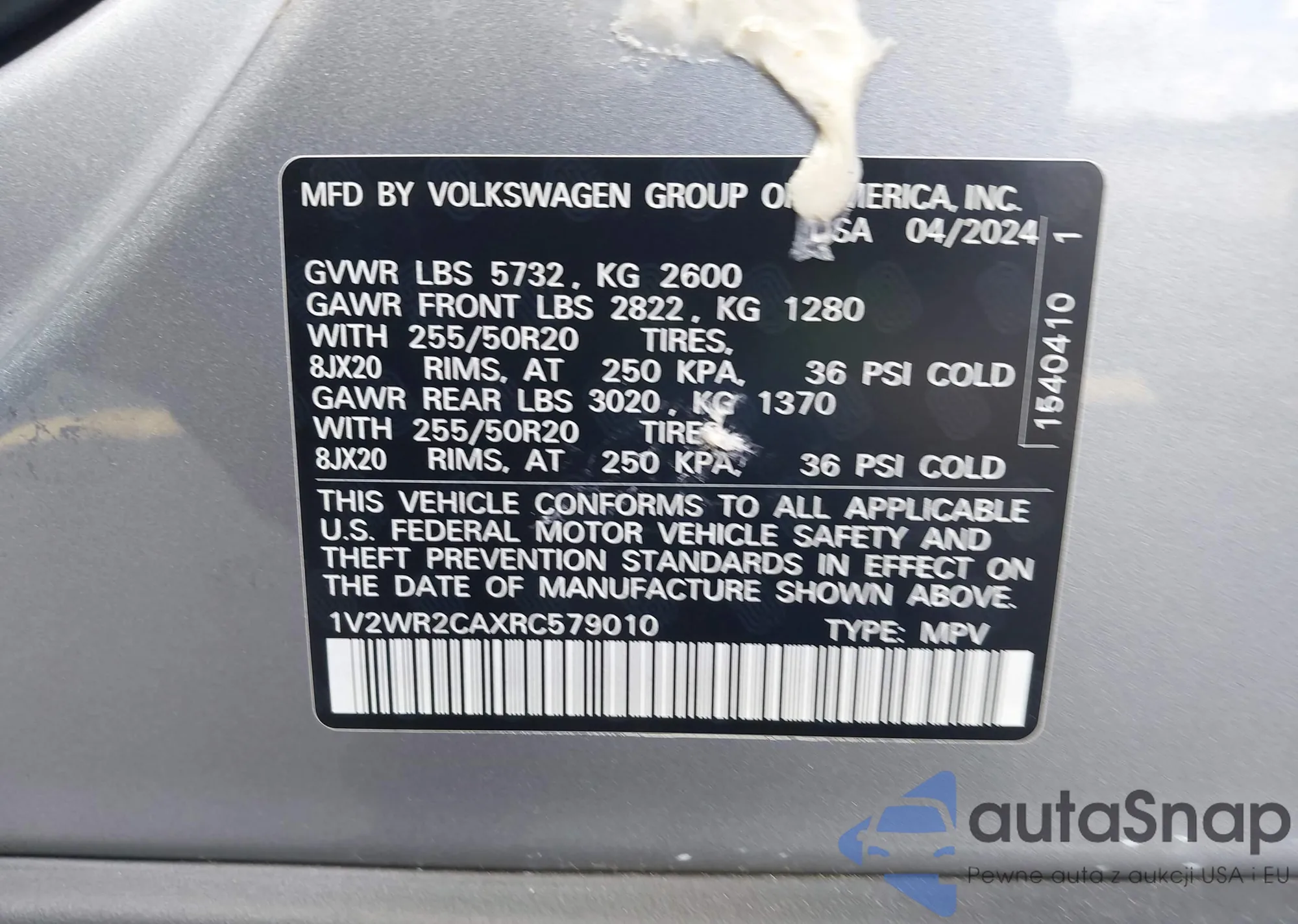 LOT: 43293809 VIN: 1V2WR2CAXRC579010