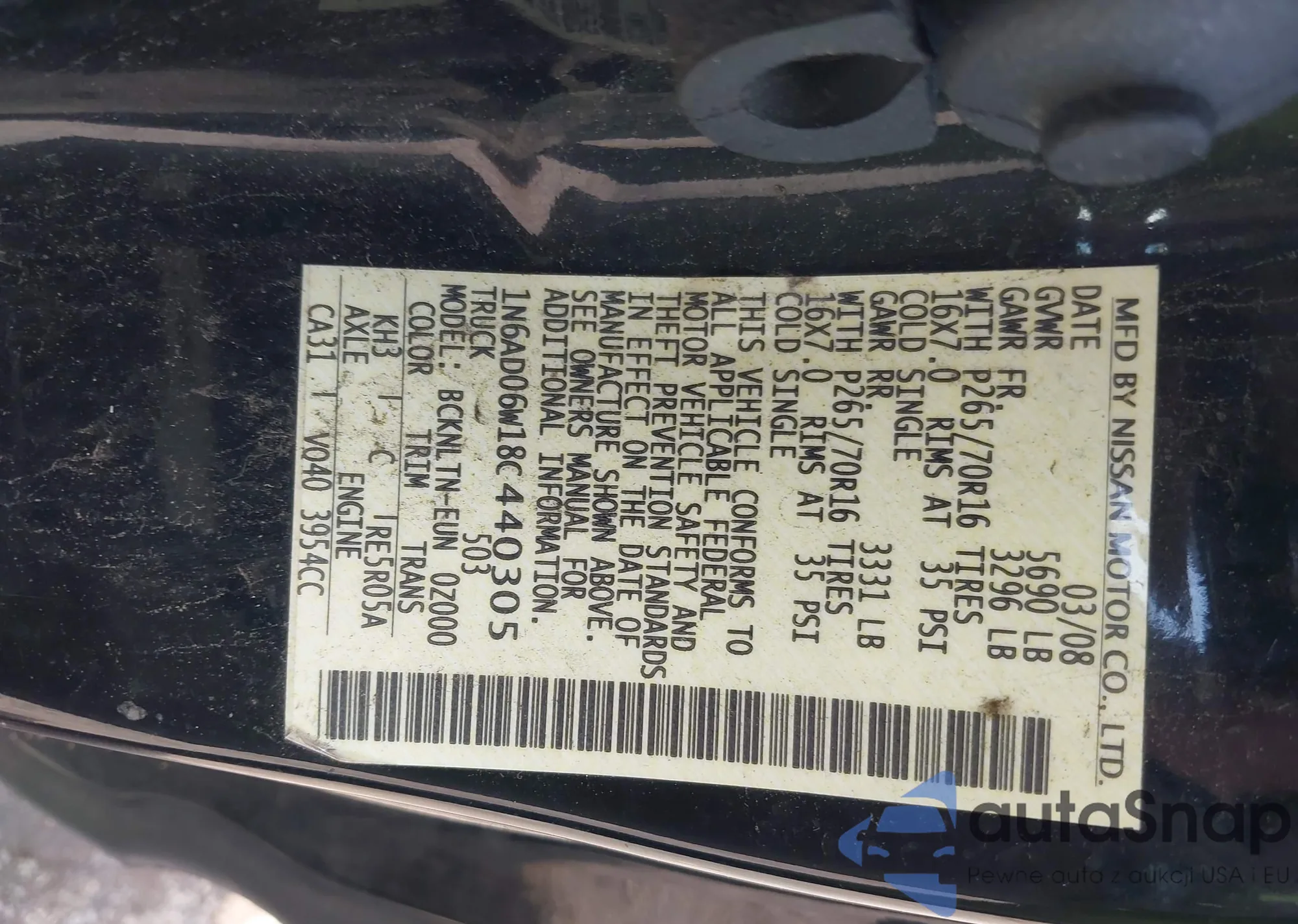 • VIN 1N6AD06W18C440305
