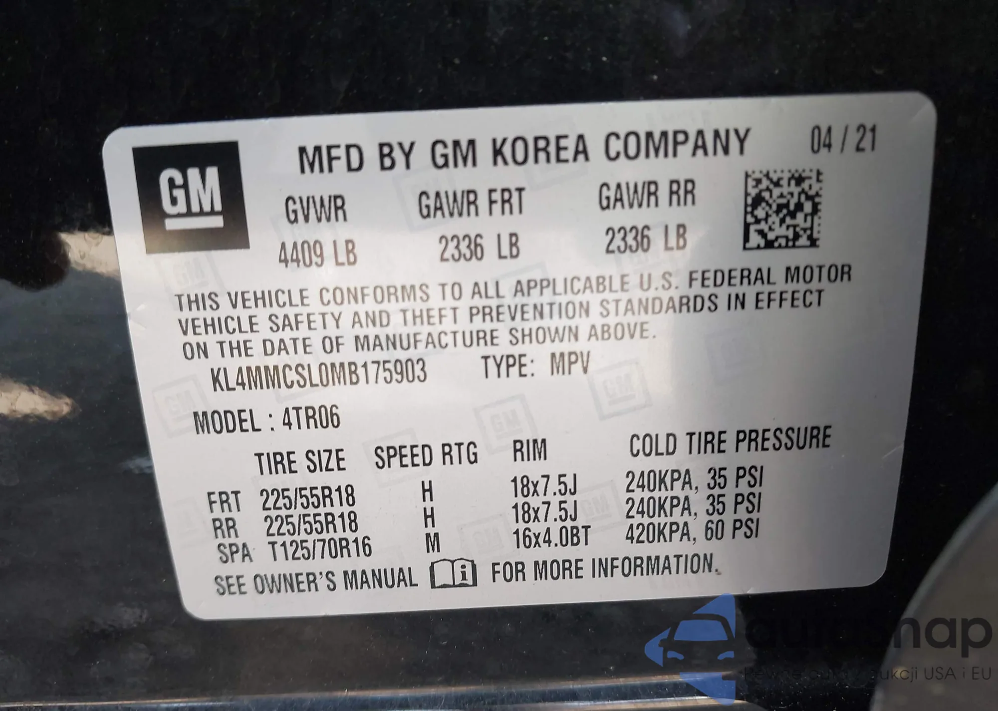 • VIN KL4MMCSL0MB175903