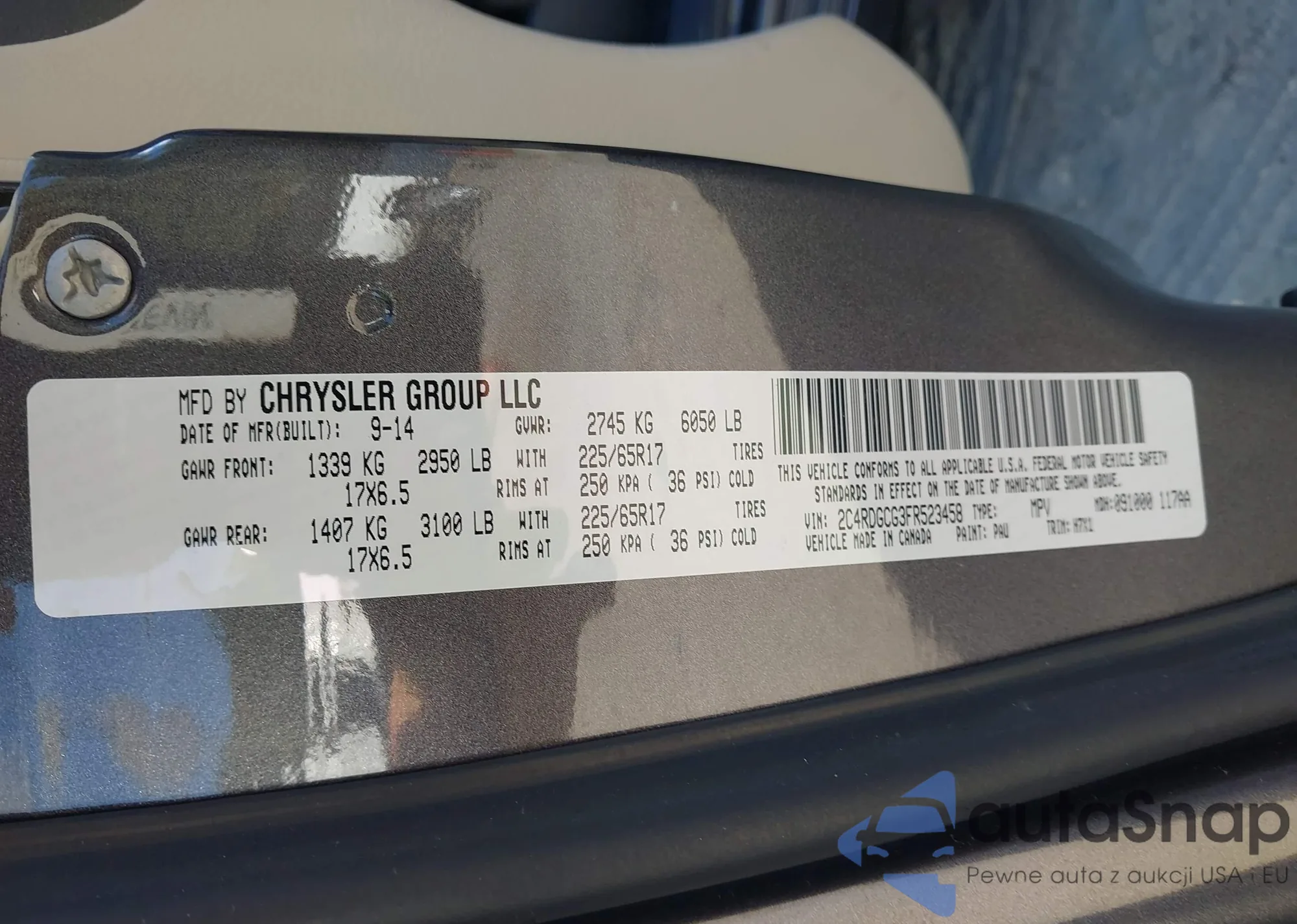 2015 Dodge Grand Caravan Sxt из США, поврежденный, VIN 2C4RDGCG3FR523458
