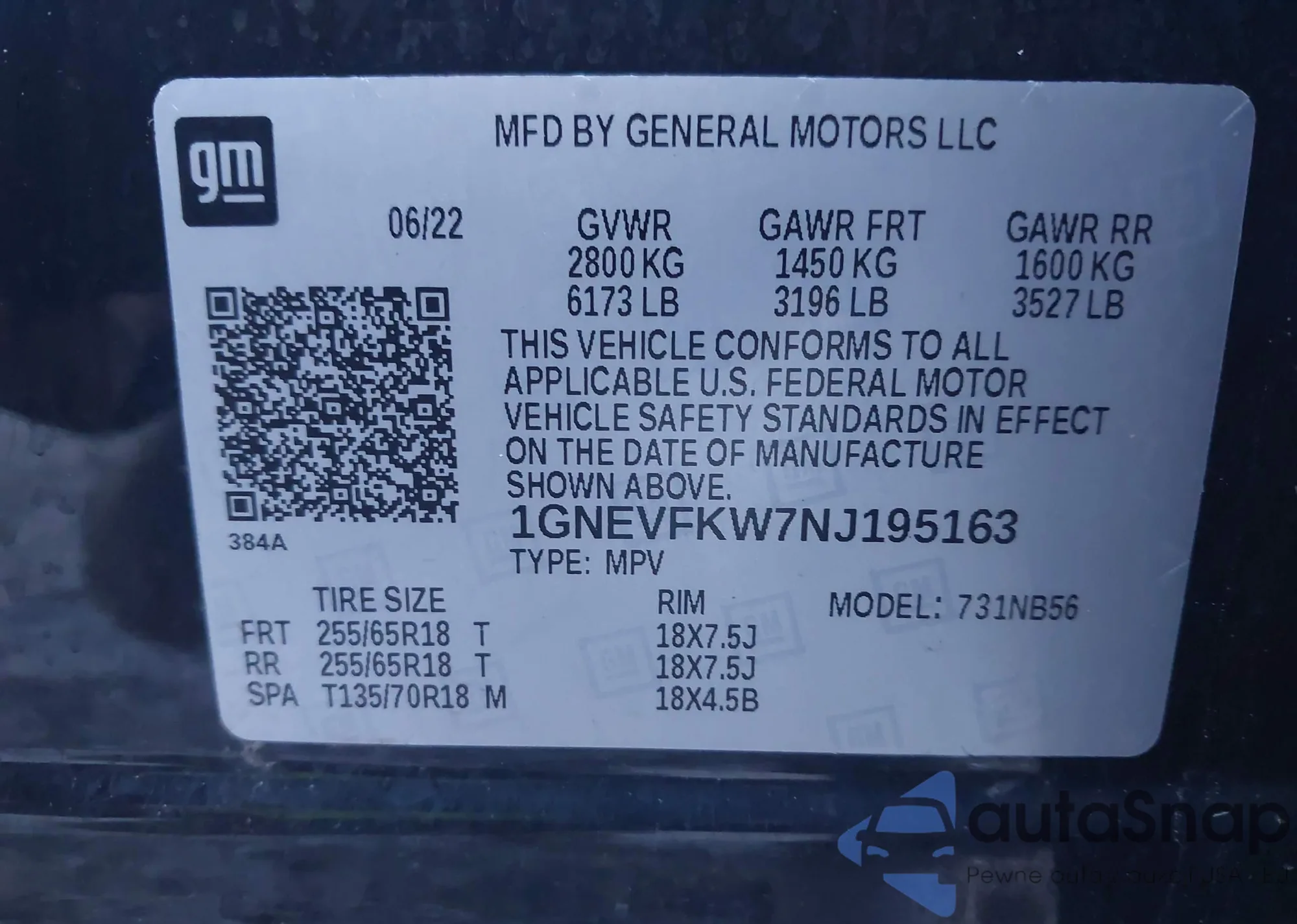 • VIN 1GNEVFKW7NJ195163