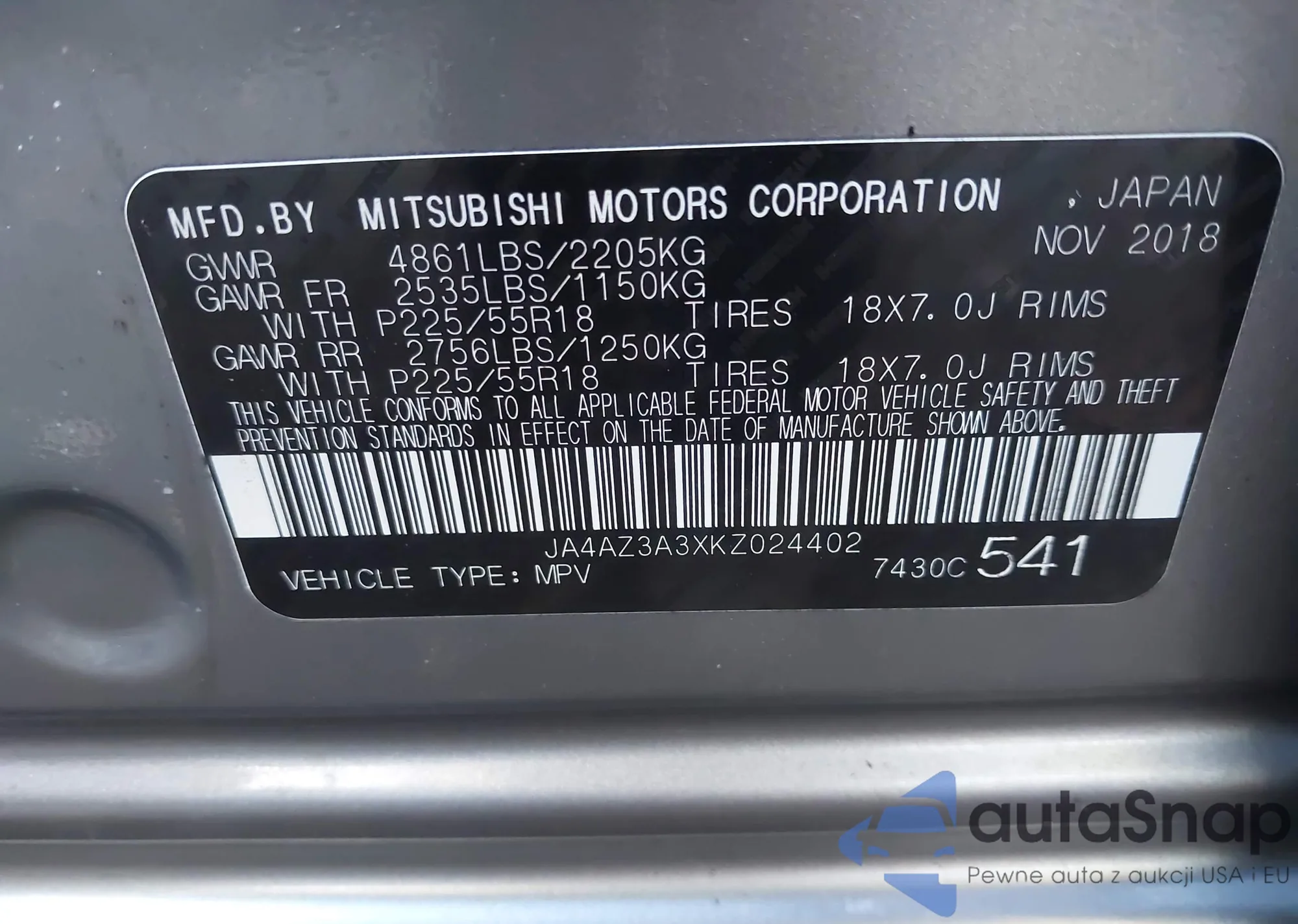 • VIN JA4AZ3A3XKZ024402