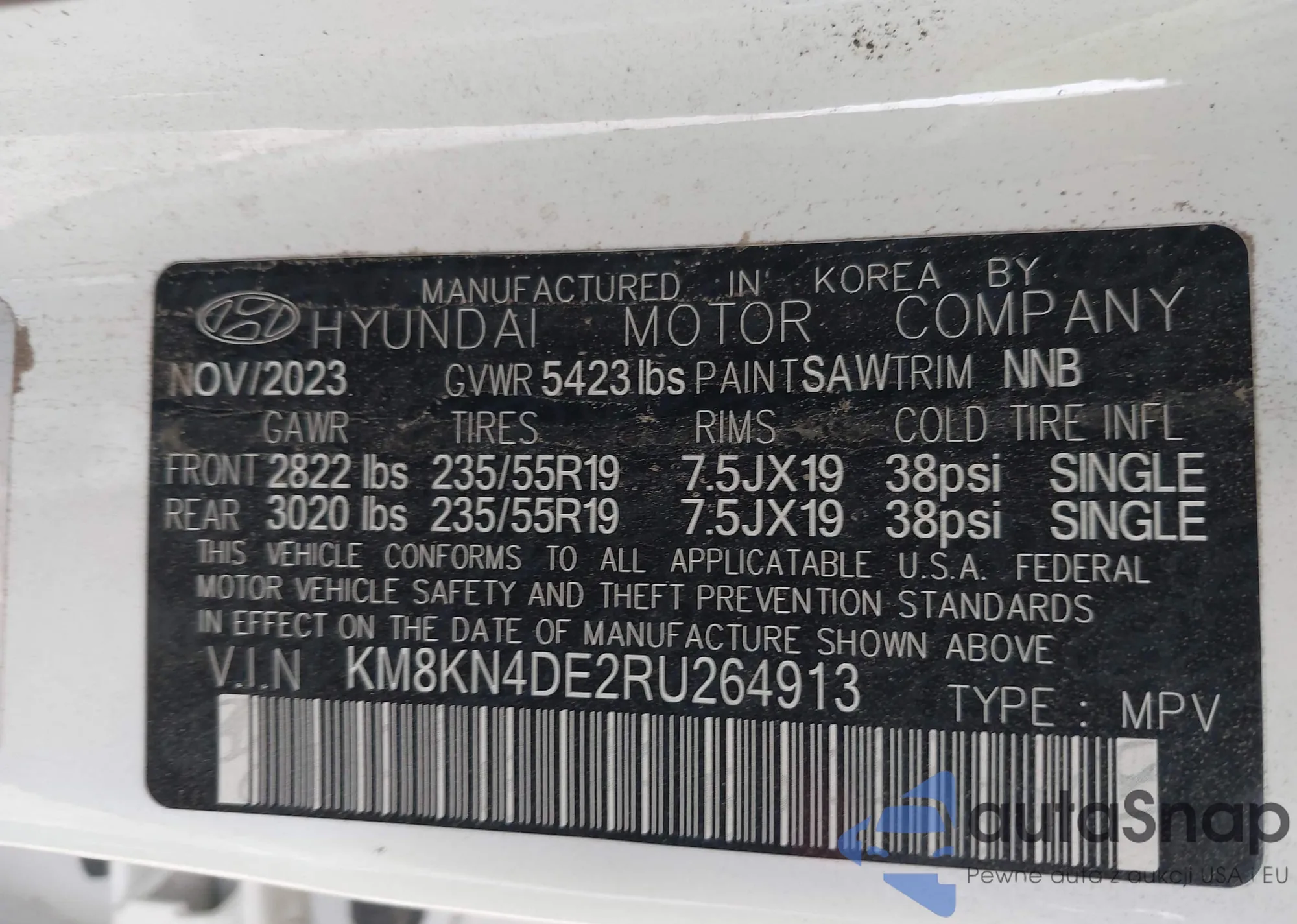 • VIN KM8KN4DE2RU264913