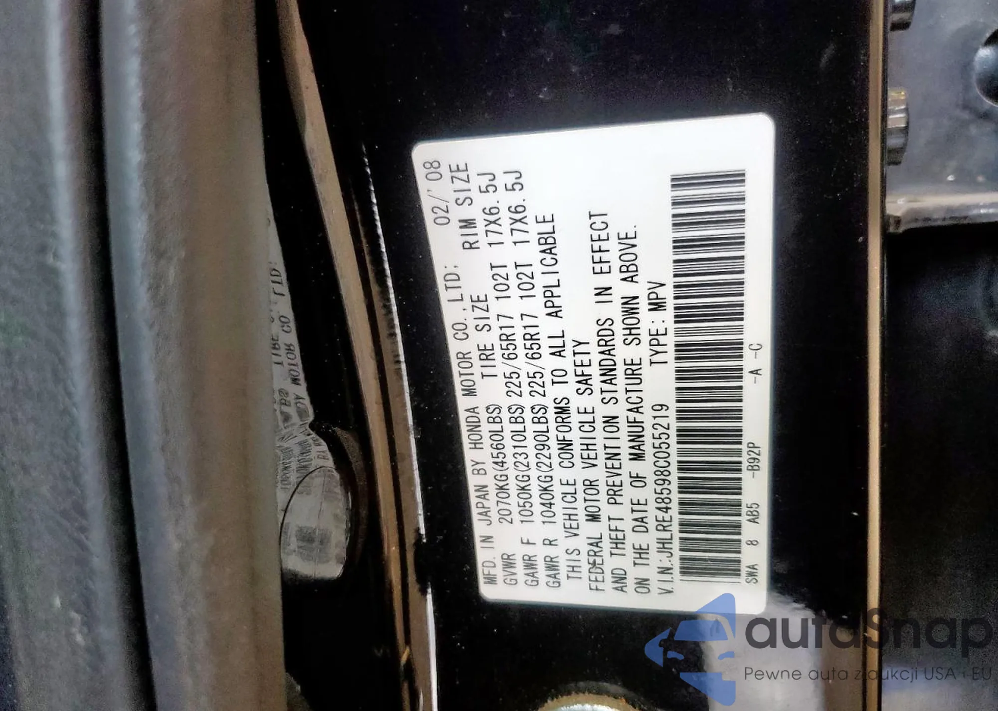 • VIN 4T3BK3BB0DU085054