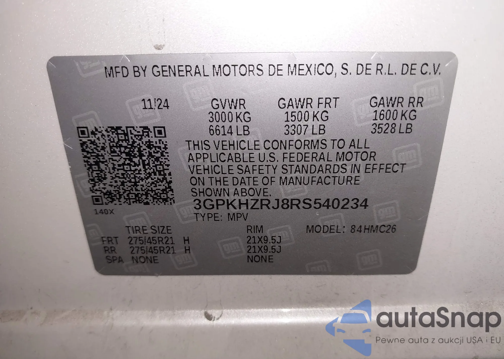 • VIN 3GPKHZRJ8RS540234